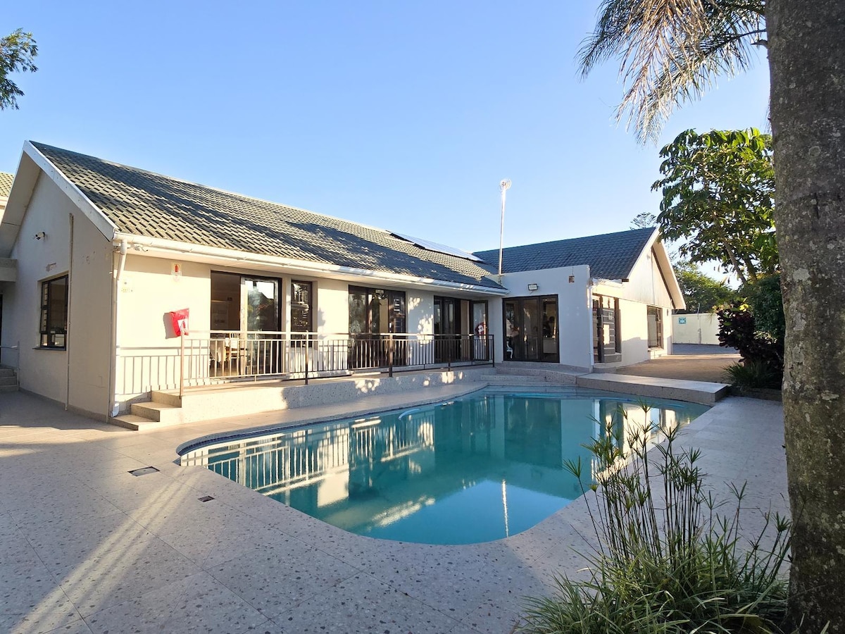 Hogar lejos de casa en un entorno seguro con CCTV y sistemas de alarma. Un alojamiento independiente con un amplio dormitorio con baño, salón y cocina. Adecuado para una familia o un grupo de amigos. Amplia zona de entretenimiento al aire libre y piscina para tu relajación. Cerca de servicios y de la playa de Bonza Bay. Wifi disponible las 24 horas, los 7 días de la semana.