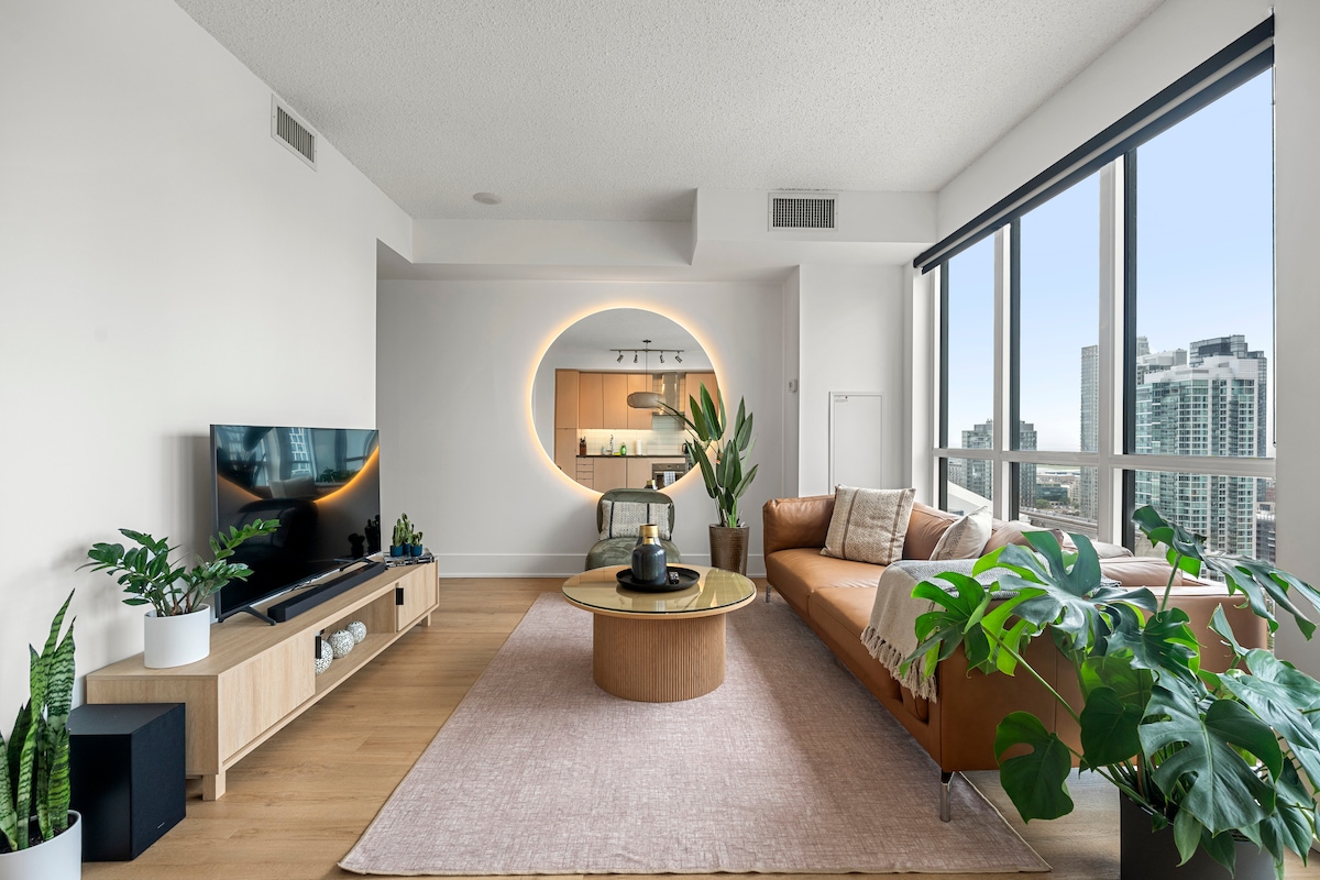 ¡Bienvenido a nuestro moderno y lujoso ático en esquina! Este espacio luminoso, diseñado con estilo, vegetación exuberante y toques de lujo, ofrece comodidad, elegancia y un ambiente tropical relajado. Disfruta de unas impresionantes vistas panorámicas de la ciudad y relájate con servicios de primera calidad, como una piscina al aire libre, una bañera de hidromasaje y una sauna con baño de vapor. A solo 15 minutos en coche del centro. Transporte público en la puerta. A 10 minutos en coche del estadio Rogers. Perfecto para huéspedes exigentes que buscan una estancia elevada en el vibrante núcleo urbano de Toronto
