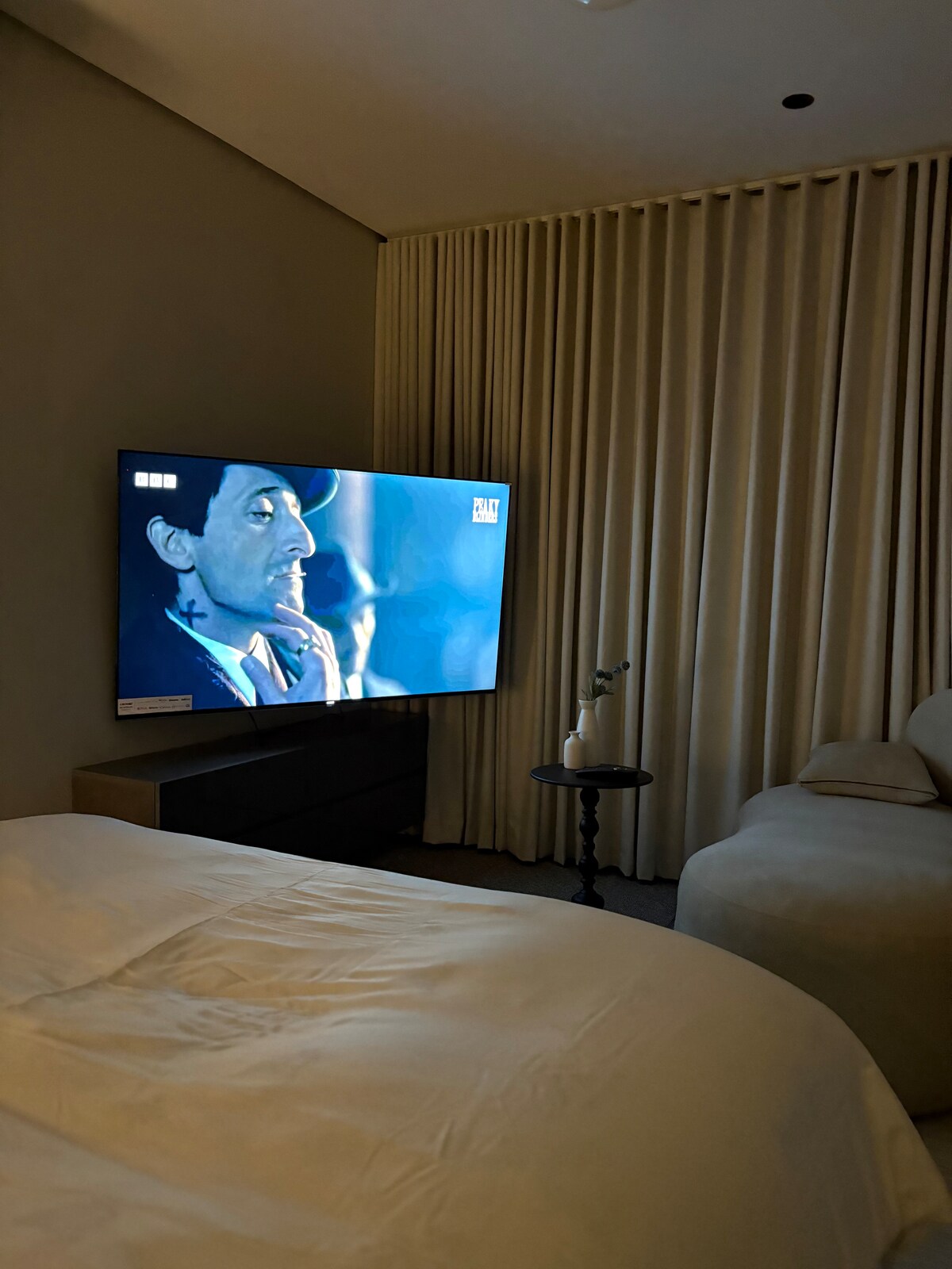 Luxury Penthouse with Self Entry consisting of two bedrooms, a living room, a cinema, outdoor seating area, and a two bathrooms fully equipped with shampoo, slippers, towels and tissues. •Located in Rasf Compound – Qurtubah District The living room TV and the cinema projector both provide access to all major platforms (Netflix, YouTube, and more). The property is in a strategic location close to: •Roshn Front (Riyadh Front) – 6 minutes •King Khalid International Airport – 15 minutes