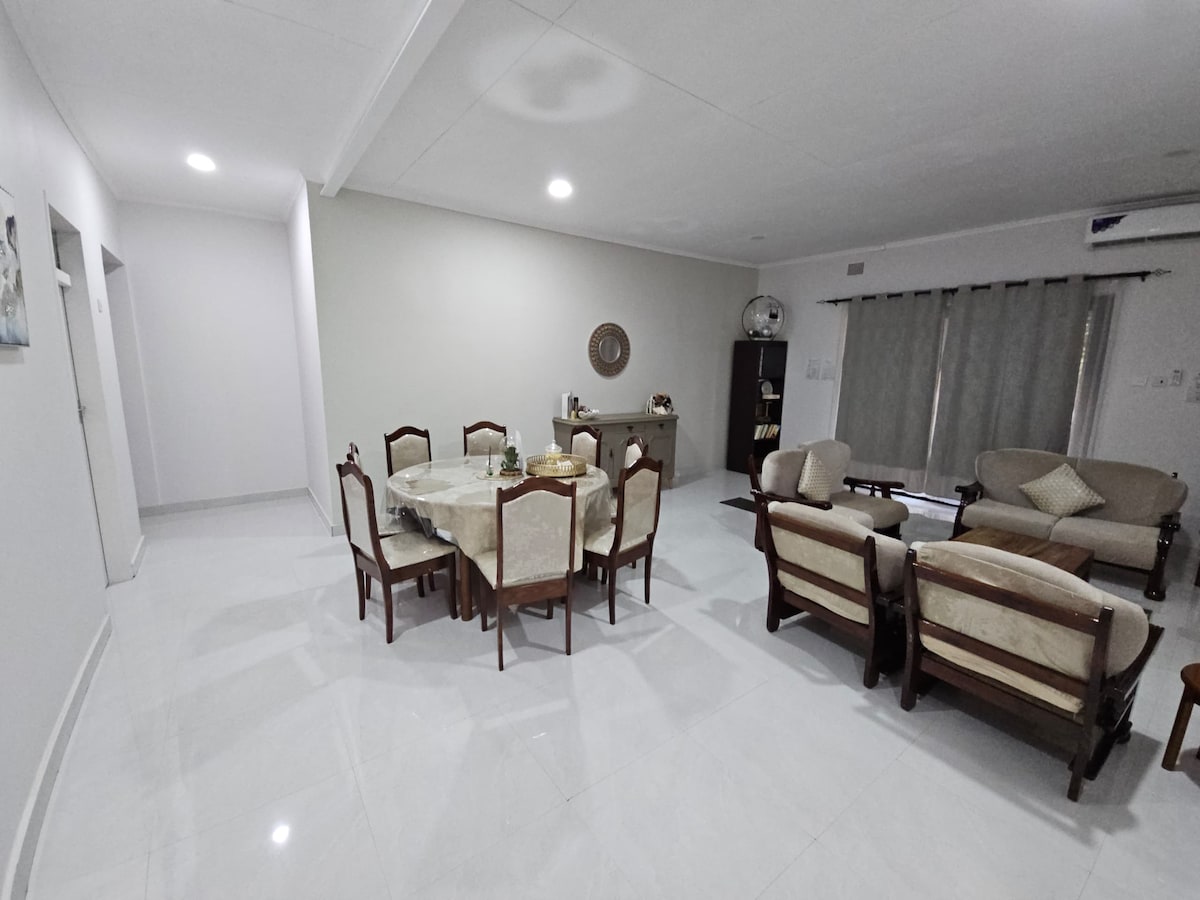 Bring the whole family to this great place with lots of room for fun. Close to CBD area, access to private (taxi) transportation, Star-link Wi-Fi network, Back-up Solar system (does not power Iron, and fans) for load-shedding periods (for lighting and phone charging as well as fridge) Lots of cite-seeing in the CBD area, including abundant produce markets within walking distances.