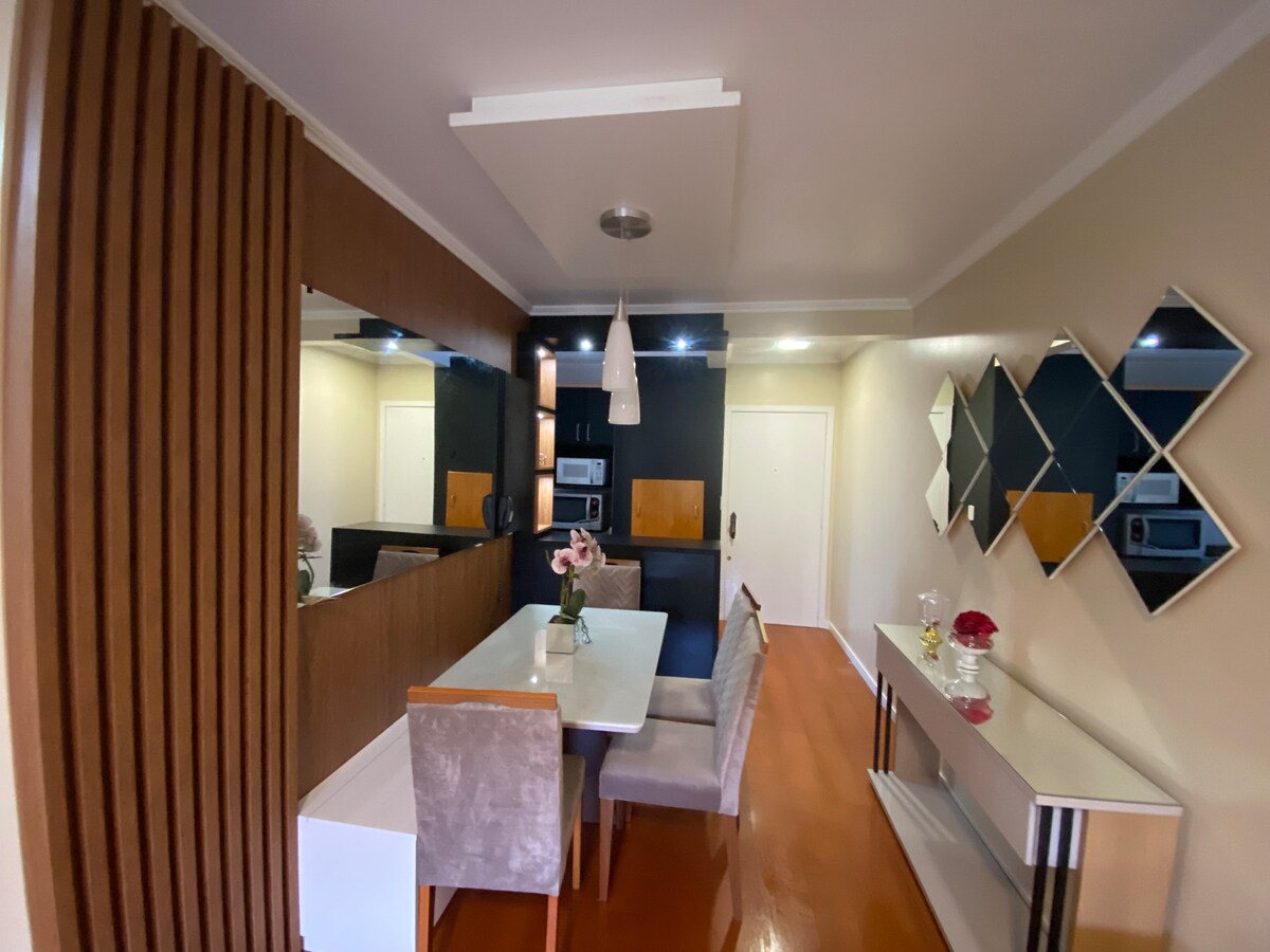 Apartamento bien ubicado, equipado con aire acondicionado, TV y cocina equipada. Garaje incluido, ideal para ejecutivos, parejas con hasta dos hijos. Tiene capacidad para 4 personas. Una cama doble y un sofá cama. Cuenta con WIFI - parrilla. Decorado para hacer que el lugar sea acogedor durante su estancia.