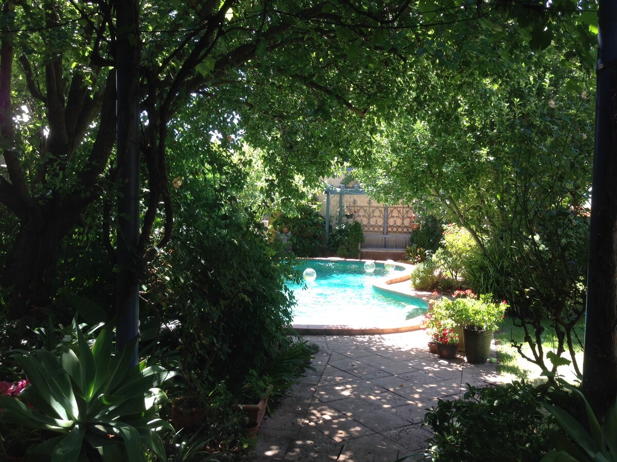 Nuestra casa está cerca de parques, cine, restaurantes y tiendas, y a 20 minutos de la playa. Te encantará nuestra casa por el espacio al aire libre, la piscina, el barrio tranquilo y la proximidad a la ciudad (a 3 minutos a pie de la parada de autobús), la playa y las colinas de Adelaida. Nuestro estudio es ideal para parejas, aventureros solitarios y viajeros de negocios. Es un estudio independiente en un entorno de jardín con acceso privado y uso de piscina y barbacoa de gas, además de desayuno de estilo continental.