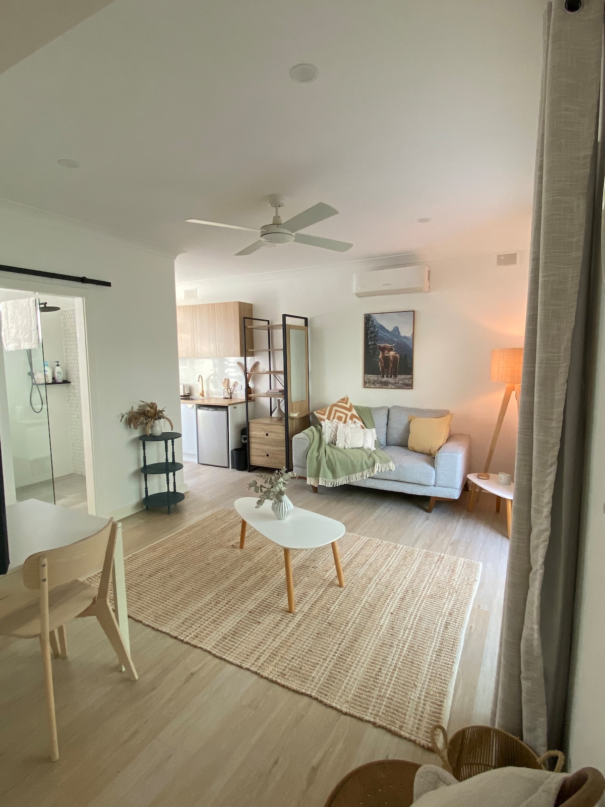 Separate from our home & nestled among treetops, our Alpine-inspired studio promises a blend of warmth & modern comfort. Wake to the melodies of birds as the morning bathes the landscape in soft light. From your balcony, savour panoramas framed by grand gums. Venture to nearby nature trails, local wineries & the renowned wineries of McClaren Vale. With our friendly Labradors & family hosting, expect a blend of hospitality & privacy. Thoughtfully equipped kitchenette. Fast NBN wifi.