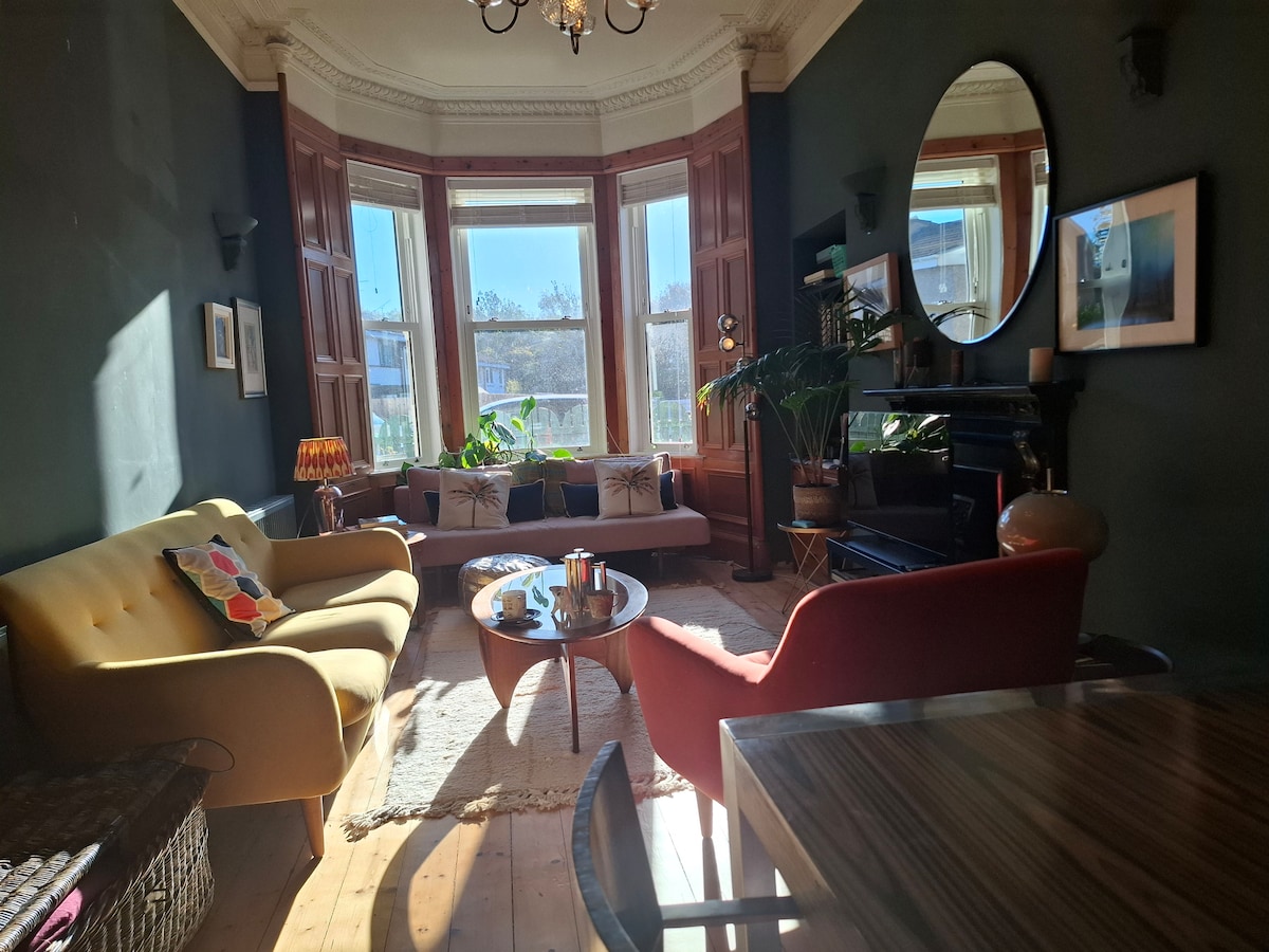 Una casa familiar con una colección de arte seleccionada, alfombras persas y muebles de todo el mundo. Situada a 10 minutos a pie de los recintos del festival, la Universidad de Edimburgo y el centro de la ciudad, la casa conserva una sensación de tranquilidad campestre. La puerta principal se abre a un camino hacia Arthur's Seat y la puerta trasera a un aislado jardín orientado al sur, con asientos y chimenea para las noches frías. Tenemos un exuberante jardín con una espiral de hierbas para ensaladas y cocinar, y tiendas, panadería y restaurantes a poca distancia a pie.
