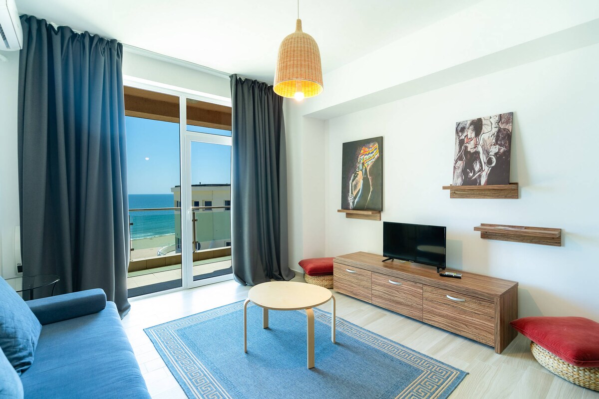 Enjoy the sea breeze in the wonderful waterfront apartment, with a spacious living room, a cozy bedroom, a full bathroom and a fully equipped kitchen. Drink your complimentary morning coffee on the balcony, watching the waves. Enjoy a lovely lunch with your family in the dinning area. Relax after dinner watching TV. Your seaside vacation will be a memorable one.