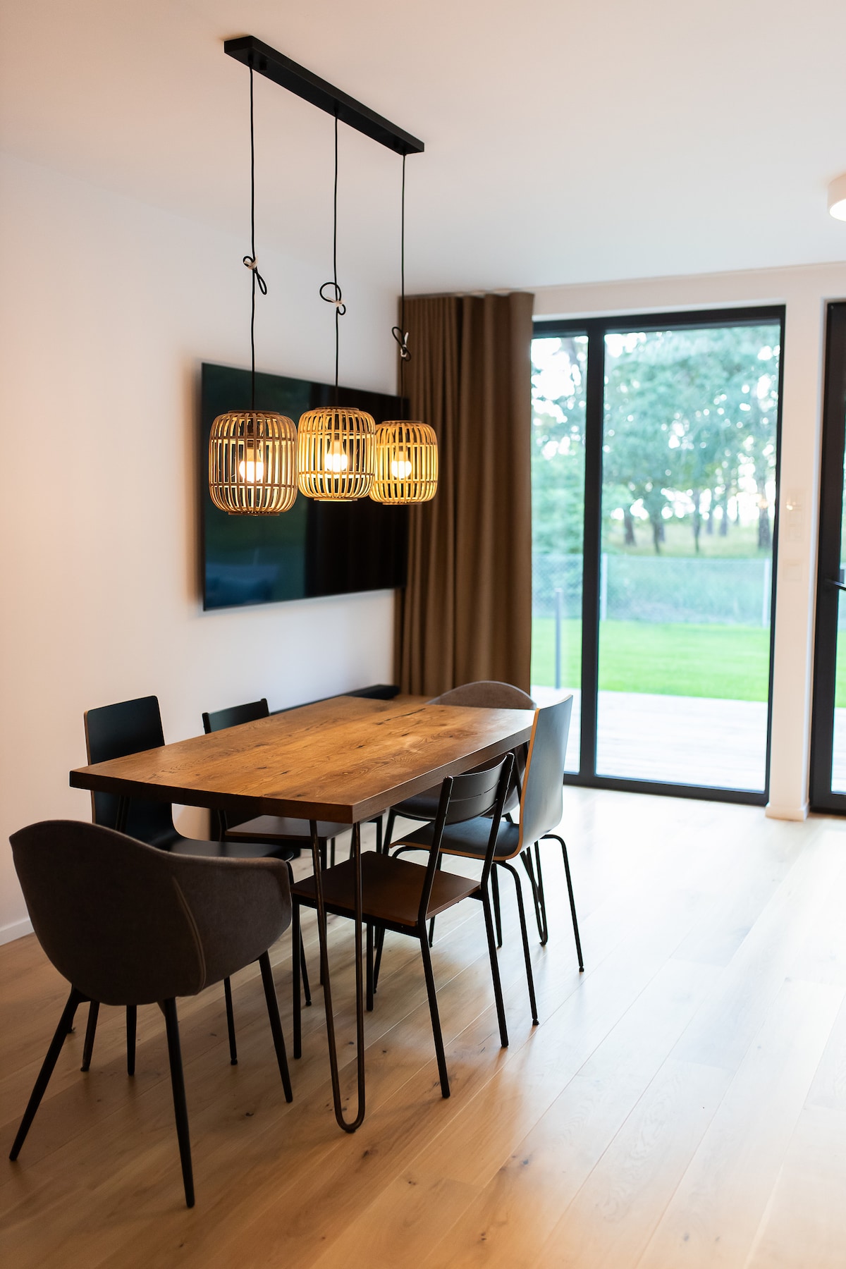 Esta casa de nueva construcción y con carácter impresiona con muebles modernos de alta calidad y una cantidad extraordinaria de espacio para hasta 14 personas, y sin embargo, se integra armoniosamente en el entorno del pueblo. El alojamiento es ideal para parejas que buscan paz y tranquilidad, así como para familias con niños, gracias a la proximidad al parque natural Am Stettiner Haff. Para cambiar de aires, las numerosas atracciones de Szczecin están a solo 25 minutos. Fácil de llegar en coche. Berlín está a solo 150 km.