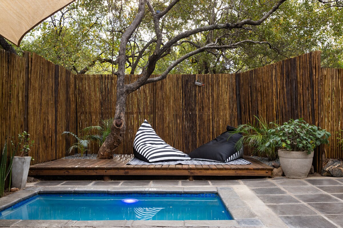 Este chalé privado tiene techo de paja, una bonita ducha a ras de suelo y bañera separada. El patio privado da al bushveld, donde los animales vagan libremente. La habitación ofrece una cama tamaño king, cafetera y tetera y una nevera. En el exterior encontrarás una piscina privada y una zona de barbacoa.