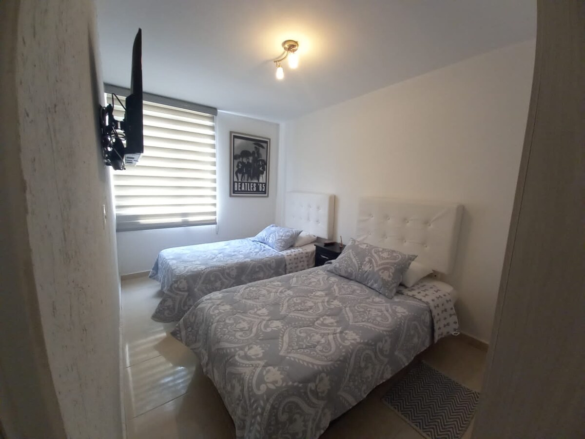 Apartamento nuevo con capacidad para 7 personas, ubicado en el municipio con el clima mas cálido del departamento del Quindío. A tan solo 5 min del aeropuerto, 18 min de Armenia y muy cerca a sitios turisticos tales como el Parque del Café, Salento, Valle del Cocora y Panaca. El condominio cuenta con vigilancia privada las 24 horas, parqueadero privado gratuito, 3 hermosas piscinas tipo Resort, Sauna, Jacuzzi climatizado, zona de arenas para niños, juegos infantiles y cancha sintética