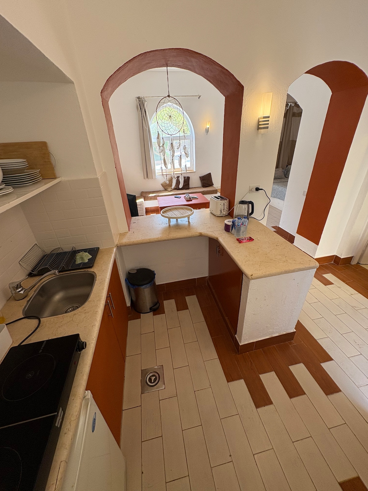 ¡Siéntete como en casa en May's Place! Disfruta de una estancia frente a la playa sin dejar de estar en el corazón de El Gouna y a poca distancia a pie de la bulliciosa vida nocturna y los restaurantes. El cómodo apartamento de 2 dormitorios y 2 baños en la planta baja tiene una amplia terraza donde podrás disfrutar de tu café y comidas y luego caminar unos pasos para darte un chapuzón en la laguna de mar abierto. Si quieres una estancia auténtica en el centro de Gouna, cerca de la mayoría de las actividades y aún así estar justo en una laguna para nadar, este es el lugar ideal para ti.