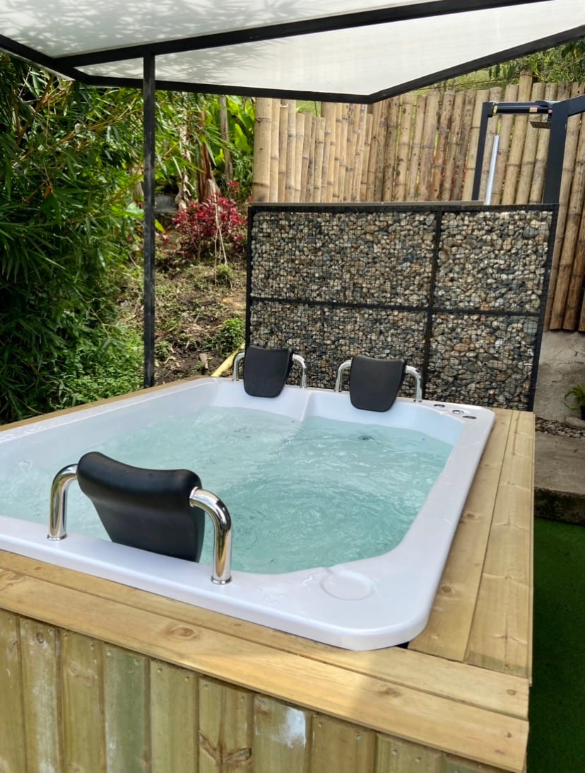 Excelente opción para familias y grupos que disfrutan estar en contacto con la NATURALEZA y la tranquilidad desde un espacio super confortable, con las mejores prestaciones y 100% privado. Cerca a todo el entorno TURISTICO. Sitio MÁGICO en las noches. Espectacular zona de PISCINA con aguas naturales de nacimiento. JACUZZI privado con agua climatizada, zona social con BBQ, WiFi de alta velocidad si deseas trabajar durante tu estadía. No apta para eventos nocturnos