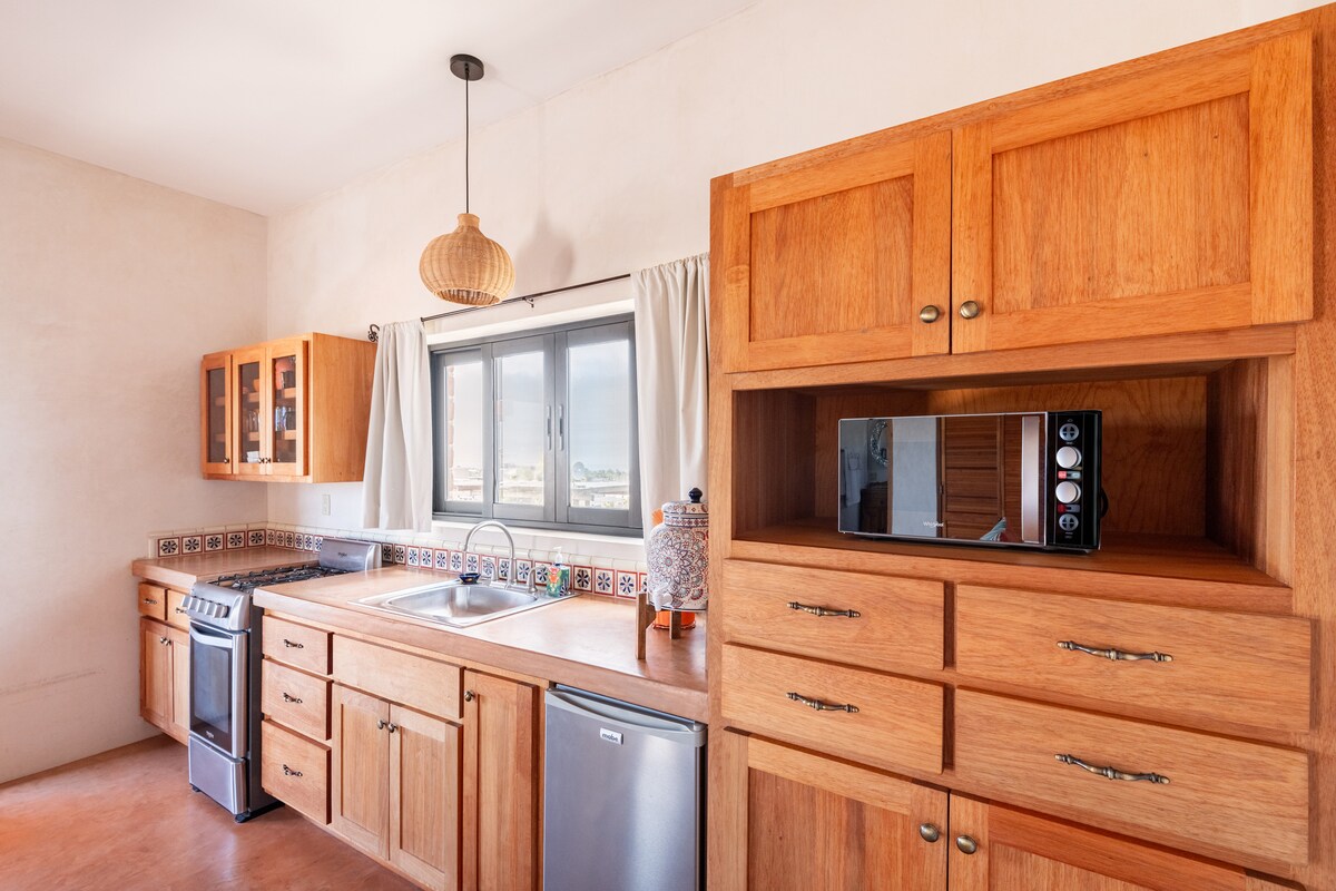 ¡Vistas épicas desde todas las direcciones! Te sorprenderá la belleza de Baja California Sur desde este apartamento a estrenar, elegante y totalmente equipado. Disfruta de un café en la terraza mientras contemplas el amanecer sobre las montañas. Después de tu día surfeando y nadando en la playa de Cerritos (a solo unos minutos a pie o en coche), relájate en el jacuzzi mientras el sol se pone sobre el Pacífico. Con vistas sin obstáculos desde todos los ángulos, tienes la garantía de ver ballenas durante la temporada. Más privacidad que en los apartamentos.