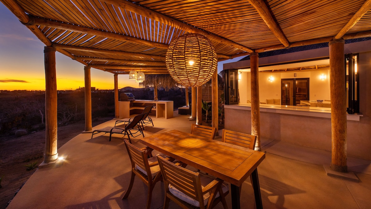 The Space Enjoy the magic of Baja California Sur….. Relax in our beautiful Bungalow in a peaceful land surrounded by chili fields, mountain and sea view landscapes located in the bohemian commune of Pescadero. An area with endless stunning Pacific Ocean sunsets, which you can enjoy on your private alfresco dining roof terrace, fully equipped for your lounging afternoon with a great book, a glass of wine and sunset shows to take your breath away.