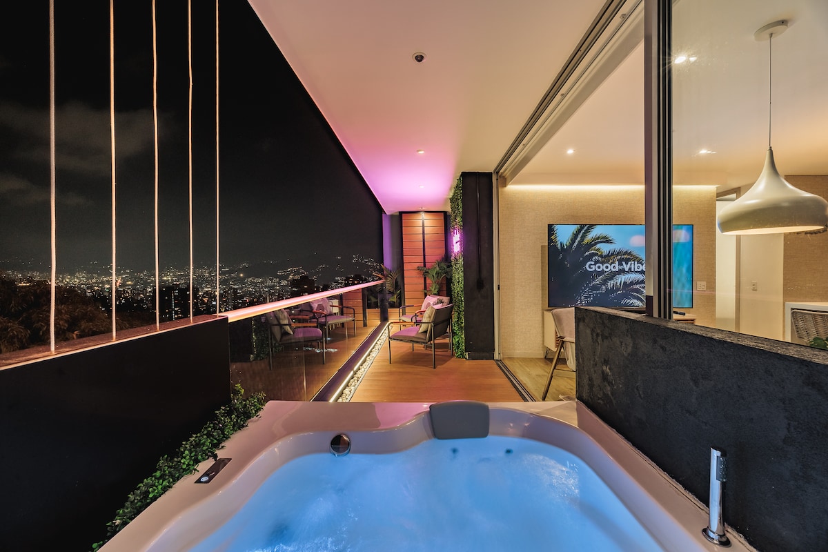 Jacuzzi Poblado Views, A/C, 85" TVs, + Pool & Gym