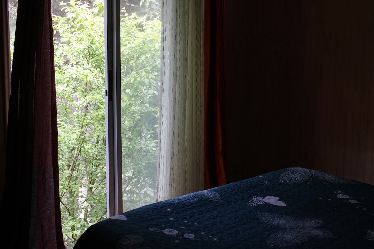 Cabaña/departamento ubicada en primer piso, completamente independiente y equipada con microonda, concina encimera y pequeño refrigerador. Tiene Wifi, TV, calefacción, cabina de ducha con radio y termo eléctrico. Acogedora, tiene una habitación principal y un estar donde hay un sofa cama pequeño. En el exterior hay estacionamiento , parrilla y lugar para fogata . Para hasta 3 personas, no se admiten mascotas. Solo usuarios airbnb, no agentes por favor.