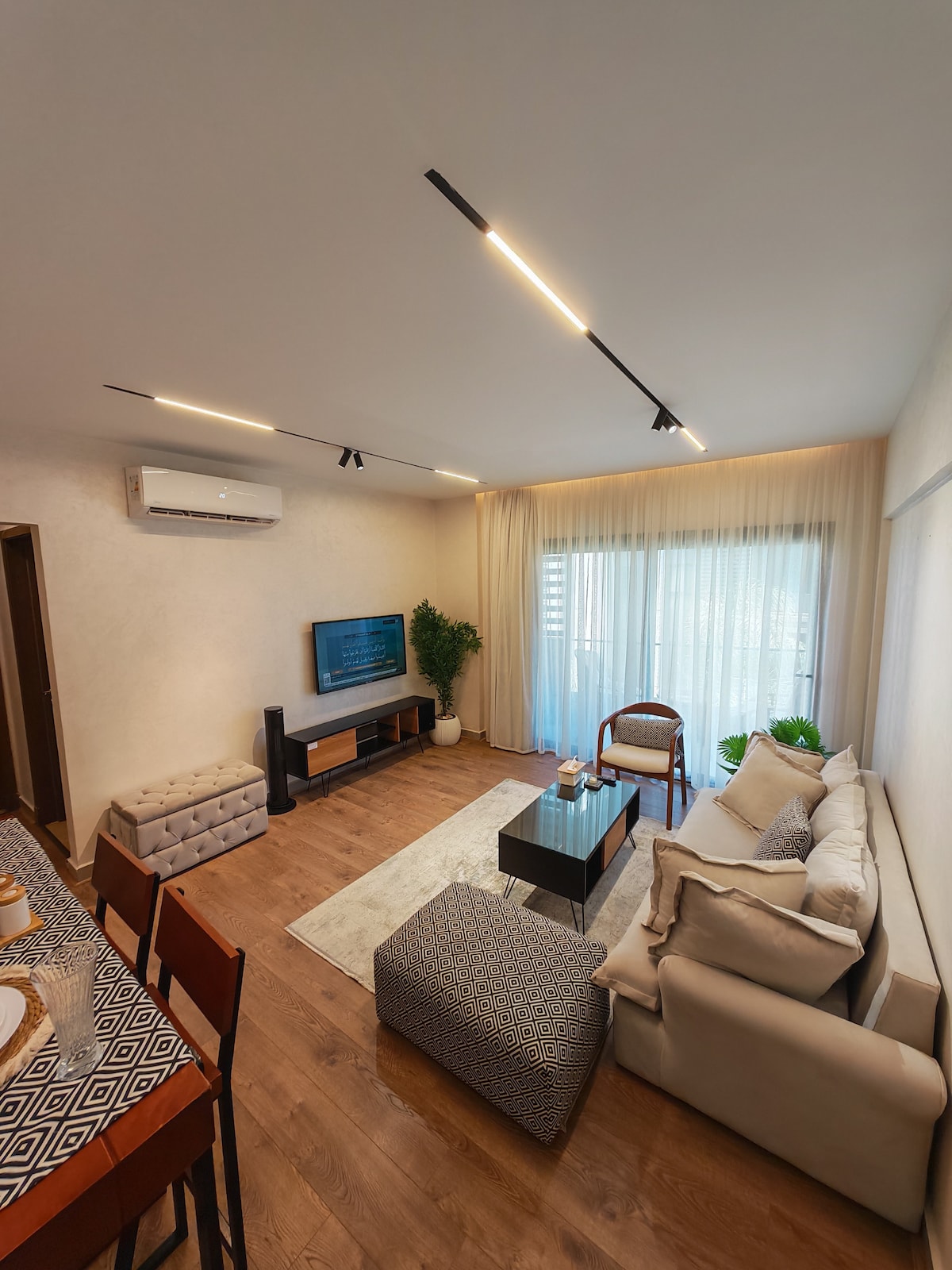 🌟 Qué ofrece este lugar • 🛏 Capacidad para 4 personas (cama cómoda + sofá cama) • ❄️ Totalmente climatizado con electrodomésticos nuevos. • Internet de alta velocidad de fibra💻 óptica: perfecto para trabajar y transmitir • Cocina🍳 totalmente equipada con una elegante mesa de bar • Smart TV de📺 50" en una acogedora sala de estar • 🚗 A solo 4 minutos de Suez Road: fácil acceso a la ciudad • Barrio🏡 tranquilo y agradable