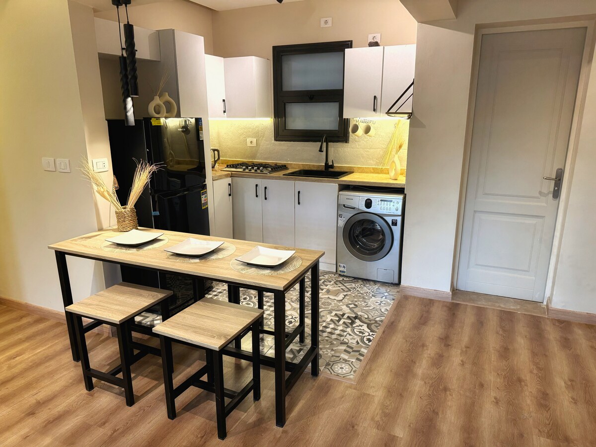 🌟 What This Place Offers • 🛏 Sleeps up to 4 guests (comfy bed + sofa bed) • ❄️ Fully air-conditioned with brand-new appliances • 💻 Optical fiber high-speed internet – perfect for work & streaming • 🍳 Fully equipped kitchen with stylish bar table • 📺 50” Smart TV in a cozy living area • 🚗 Only 4 min from Suez Road – easy access to the city • 🏡 Peaceful & friendly neighborhood