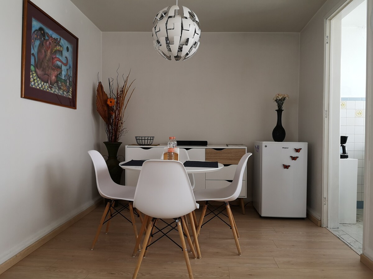 El apartamento se encuentra en una calle toda arbolada en la Colonia Narvarte. Se ubica a 8 minutos del Metro Eugenia. Enfrente hay una cafetería, a una o dos cuadras hay frutería, restaurantes, lavanderías, tortillerías, Oxxo, minisupers, cervecerías, heladerías, etc. Se encuentra en segundo piso y consta de sala, comedor, cocina, pasillo y una recámara con baño completo. Tiene cafetera, horno eléctrico, de microondas, licuadora, todos los instrumentos de cocina. Cuenta con TV, Cable y Netflix.