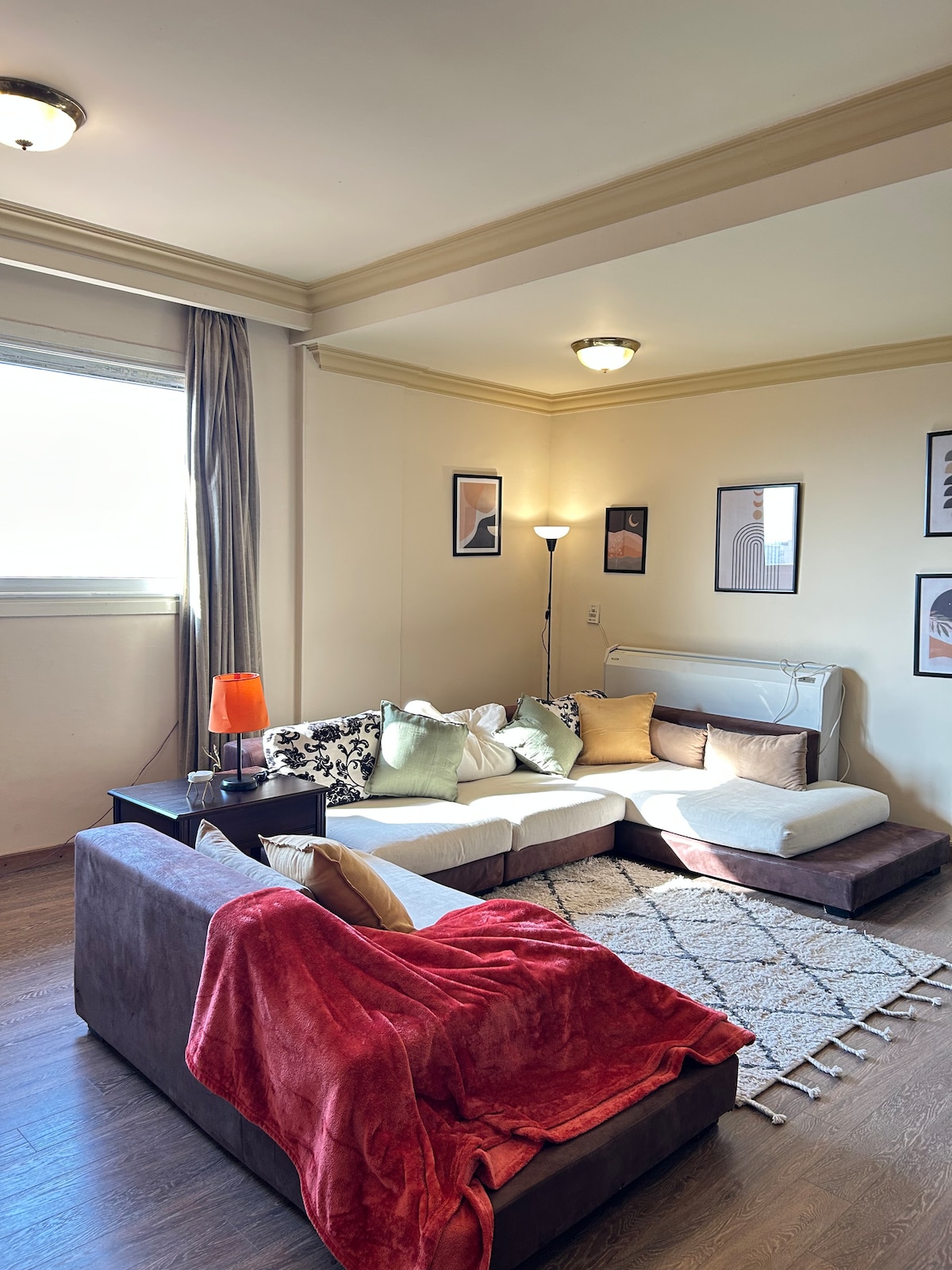 ¡Bienvenido a nuestro acogedor apartamento de estilo bohemio en un barrio tranquilo y exclusivo! Disfruta de un espacio luminoso con exuberantes plantas, suelos de parqué y una cocina totalmente equipada. Relájate con un televisor inteligente de 65 pulgadas y disfruta de las hermosas vistas al jardín. A solo 3 minutos a pie de las tiendas locales y a 20 minutos del centro de la ciudad y del Museo Egipcio, ¡es el refugio perfecto donde la comodidad se une a la conveniencia!