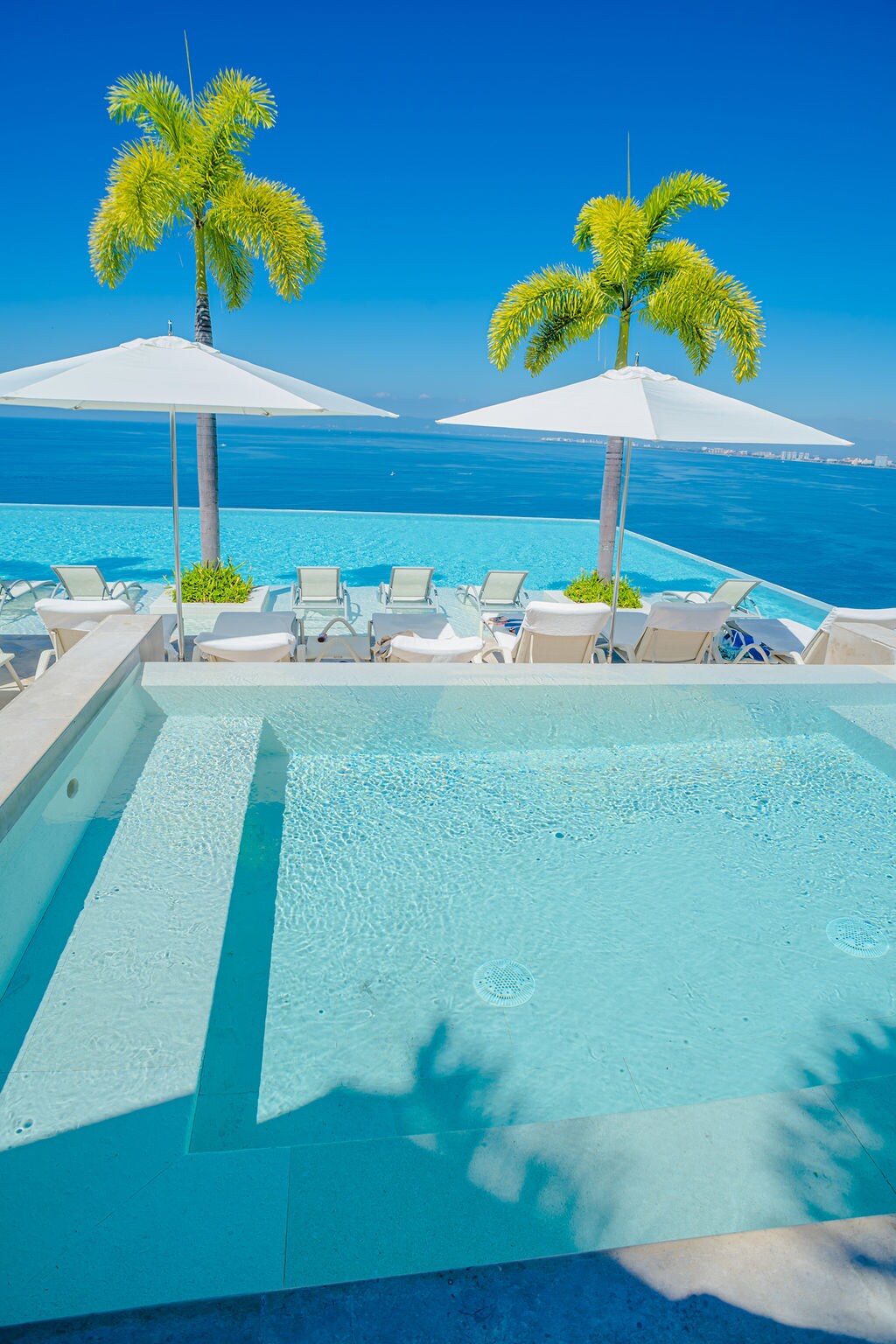 Piscina en la azotea del condominio con vista al mar y servicios exclusivos