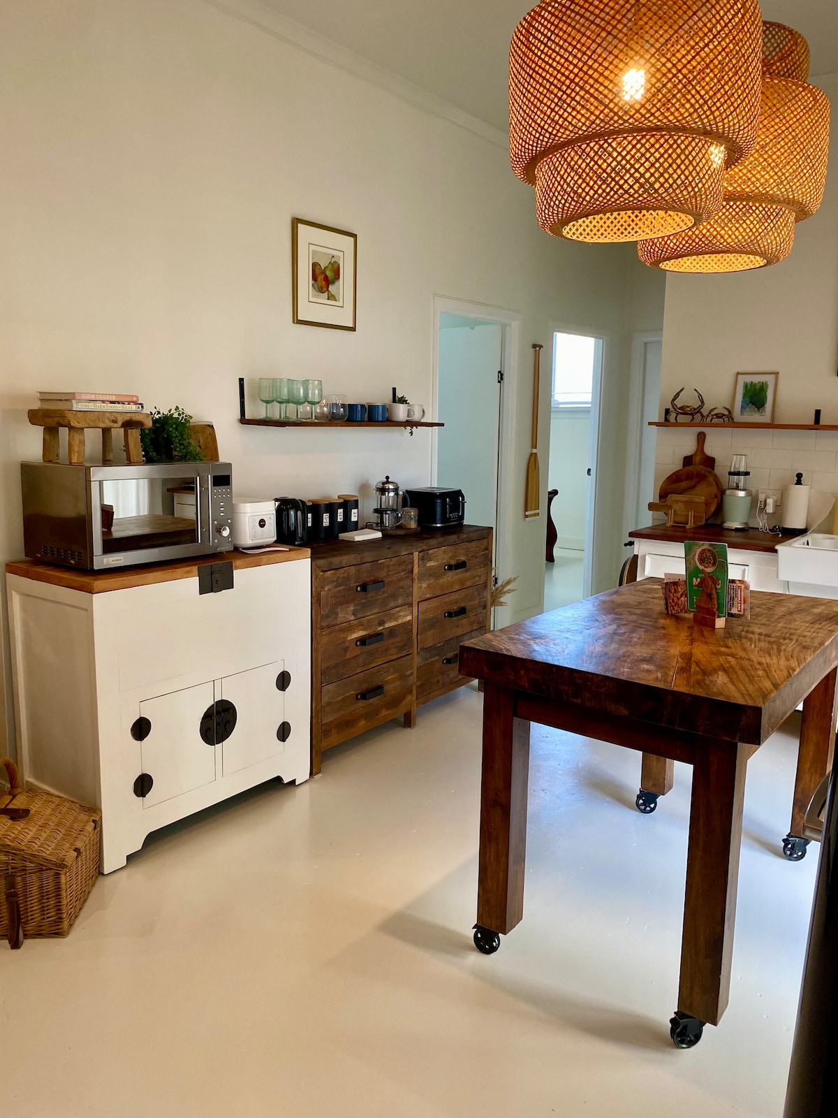 Disfruta de la tranquilidad de una capilla bellamente decorada enclavada en el interior de Gold Coast. Relájate en un columpio romántico con vistas al estanque y observa la impresionante puesta de sol. Acurrúcate junto al fuego o relájate con un baño de inmersión. El altillo cuenta con una cama tamaño queen y un sofá cama individual con ruedas, mientras que el segundo dormitorio ofrece opciones de cama flexibles, que incluyen una cama tamaño king o dos individuales; especifica tu preferencia. Hay camas plegables adicionales y una cuna portátil disponibles.