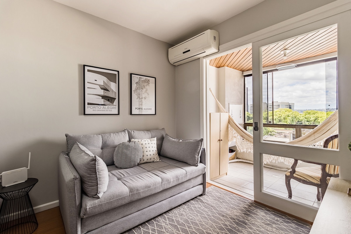 Awarded 70m2 LOFT in one of the most conceptual buildings in design in Porto Alegre, 8 minutes from the Iguatemi shopping mall. Decor inspired in Brooklyn 60's , NYC, fully furnished and ULTRA equipped, with ambient sound via amazon Alexa & various voice-controlled lighting scenarios, ultra fast fiber optic Internet (600mbps), work-station space, full kitchen, hydro for 2 people and a large infra. An experience for demanding people who seek to be surprised.