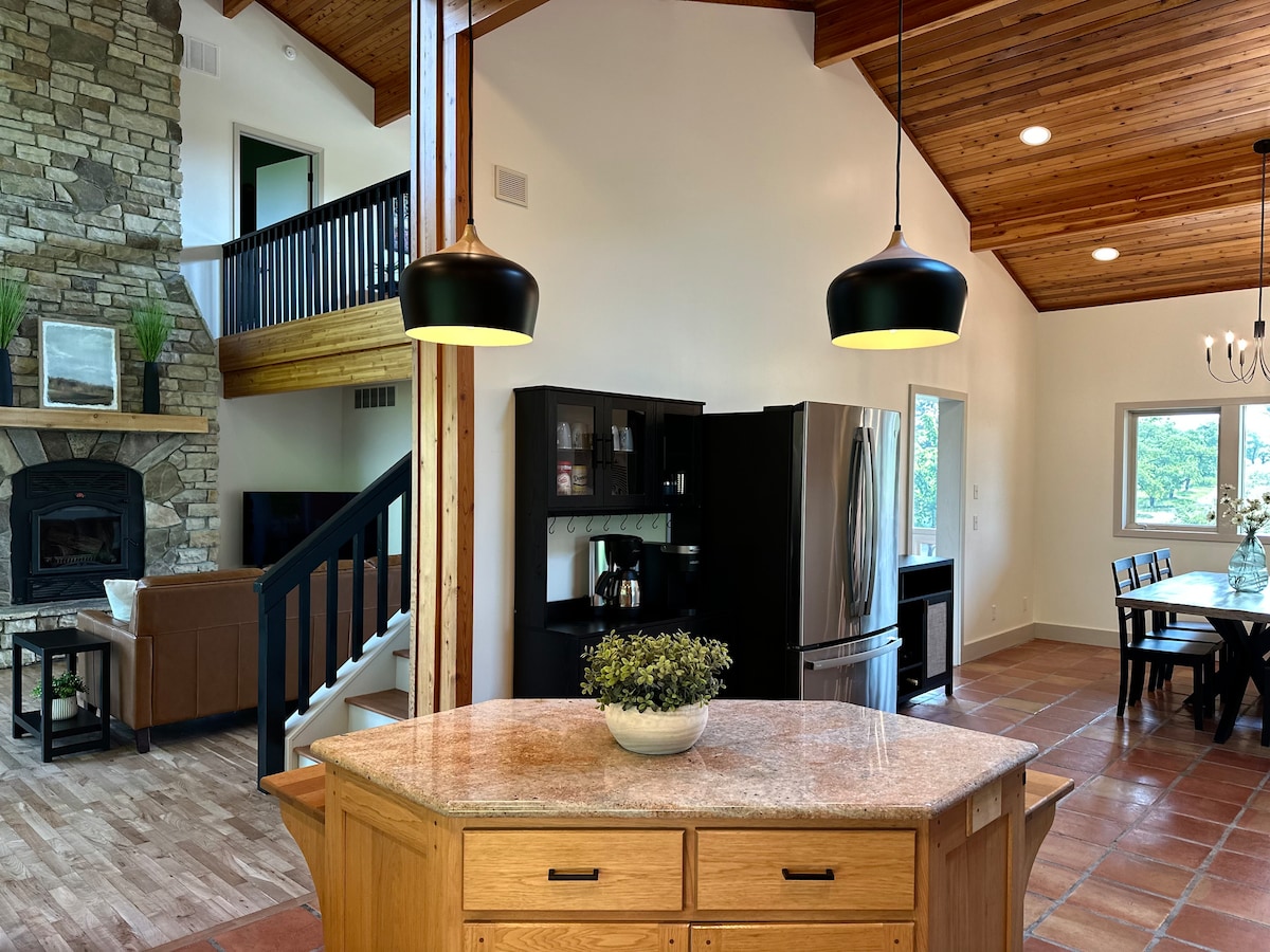 Disfruta de la comodidad de una época pasada mientras te hospedas en esta pintoresca cabaña de troncos de cuento de hadas de la década de 1940. El Hawks Nest ha sido restaurado con cariño a su esplendor original, al tiempo que tiene todas las comodidades modernas entretejidas a través de su limpio espacio de 380 pies cuadrados. Refúgiate en el espacioso porche cubierto para relajarte y ver la propiedad de un acre y medio que conduce a 100 pies de frente al lago 6Mile. Contempla las estrellas mientras te relajas en las cómodas sillas doradas construidas por los amish alrededor de la espaciosa zona de la chimenea de adoquines.