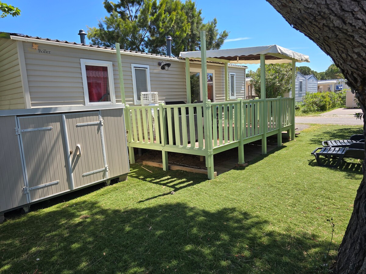 Magnífica casa móvil en un pueblo de vacaciones Mar Estang 4*. El pueblo de vacaciones está idealmente situado entre el mar y la montaña en la frontera con España, situado entre la playa, el estanque y la reserva natural. El pueblo está a 50 m de la playa y tiene acceso directo. La casa móvil es moderna y está muy bien equipada. Tiene una gran terraza en la que se pueden pasar noches cálidas y agradables.