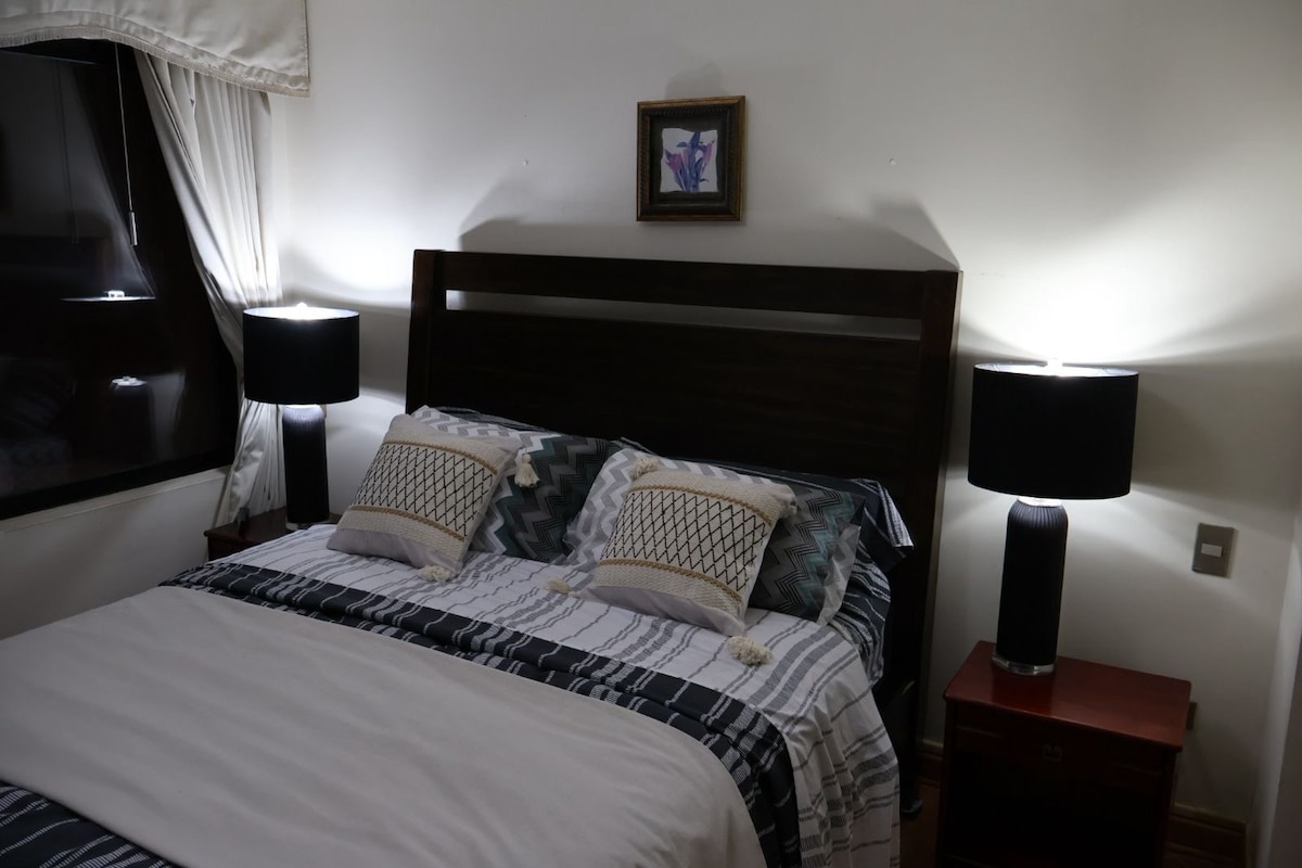 Lindo y acogedor departamento para 2 personas con habitación suite. Ubicado en exclusivo complejo Laguna del Mar. Espacio equipado para que tengas una estadía perfecta. Cuenta con ropa de cama y toallas de baño. Lavadora - Secadora, Smart TV en habitación y living, WIFI. Cocina bien equipada, con cafetera, microondas, encimera, horno, tostador eléctrico, vasos, copas, minipimer y utensilios para todas tus preparaciones. Terraza con vista a la laguna y un estacionamiento disponible