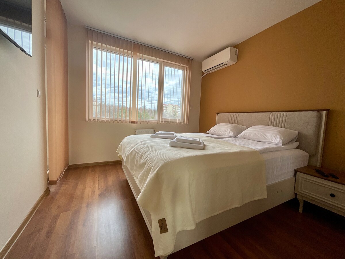 Welcome to our brand new lovely, sunny and modern 2-bedroom apartment in the heart of V. Tarnovo, which feels like your home away from home. It offers beautiful view and it is located in the heart of town. We have made sure the apartment has everything you would need for your stay, while offering great views overlooking the hilly old town. All restaurants, bars and sites in the city are very close-by. The area is beautiful, quiet and safe with free parking spots just across the building.