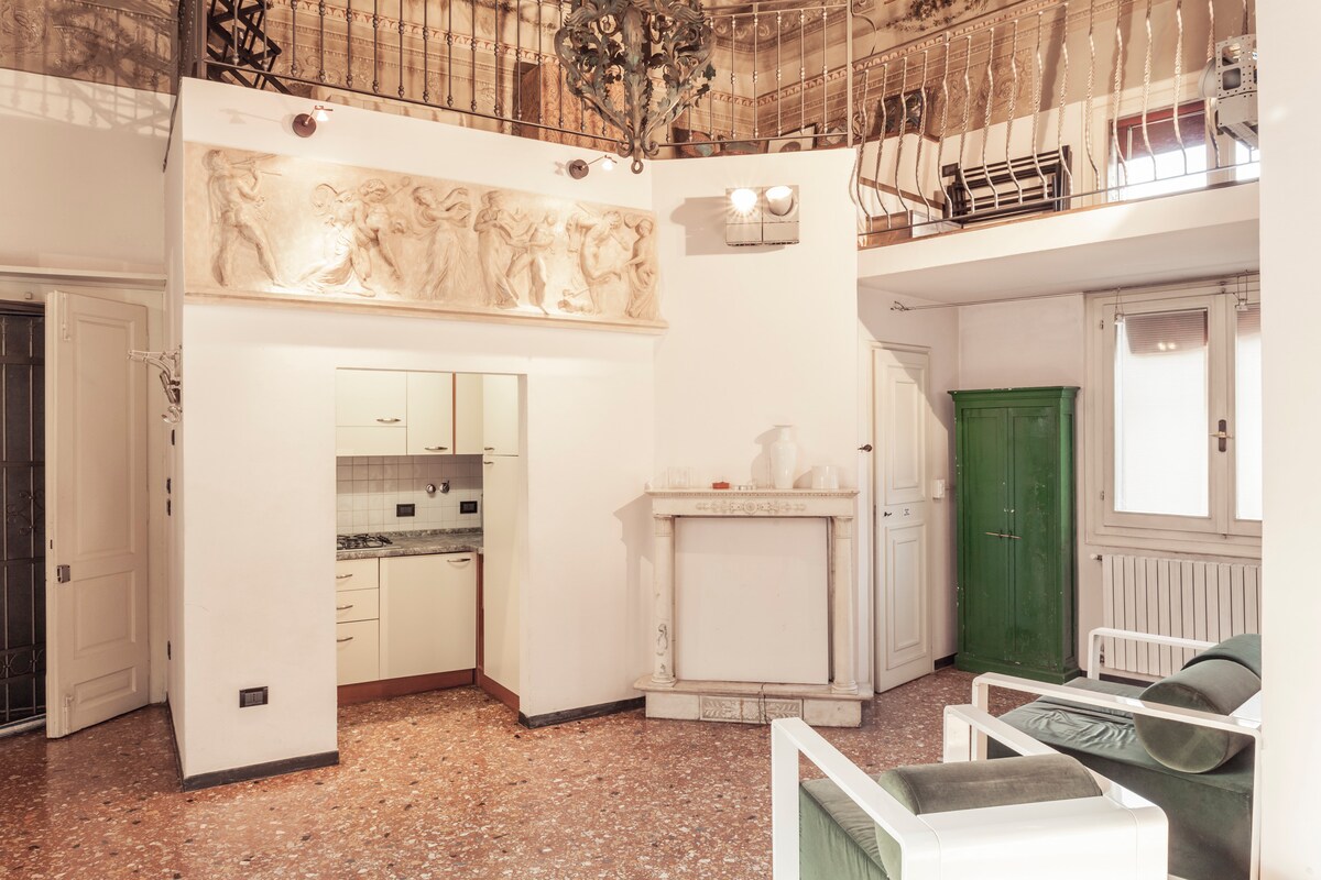 Step into a fairytale and experience the magic of the 15th century. This enchanting, high-end loft is a treasure trove of artistic details, crowned by magnificent vaulted ceilings. Here, you will be fully immersed in an evocative atmosphere, living in close harmony with the timeless world of fine art and Italian craftsmanship.