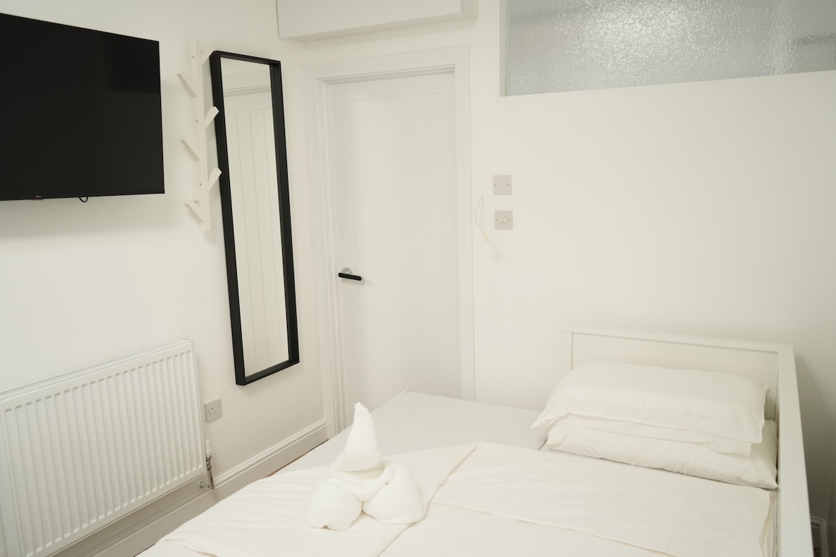 Welcome to your London retreat - a pvt calm studio designed for comfort & ease: - Sleeps 1 | 1 bedroom | 1 bed | 1 bath - Rainfall walk-in shower & heated towel rail - Single bed that can be extended to a double bed - Kitchenette w/ oven, mini fridge & cooking basics - Central heating & portable fans - In-unit washer & free dryer - Private entrance & free street parking