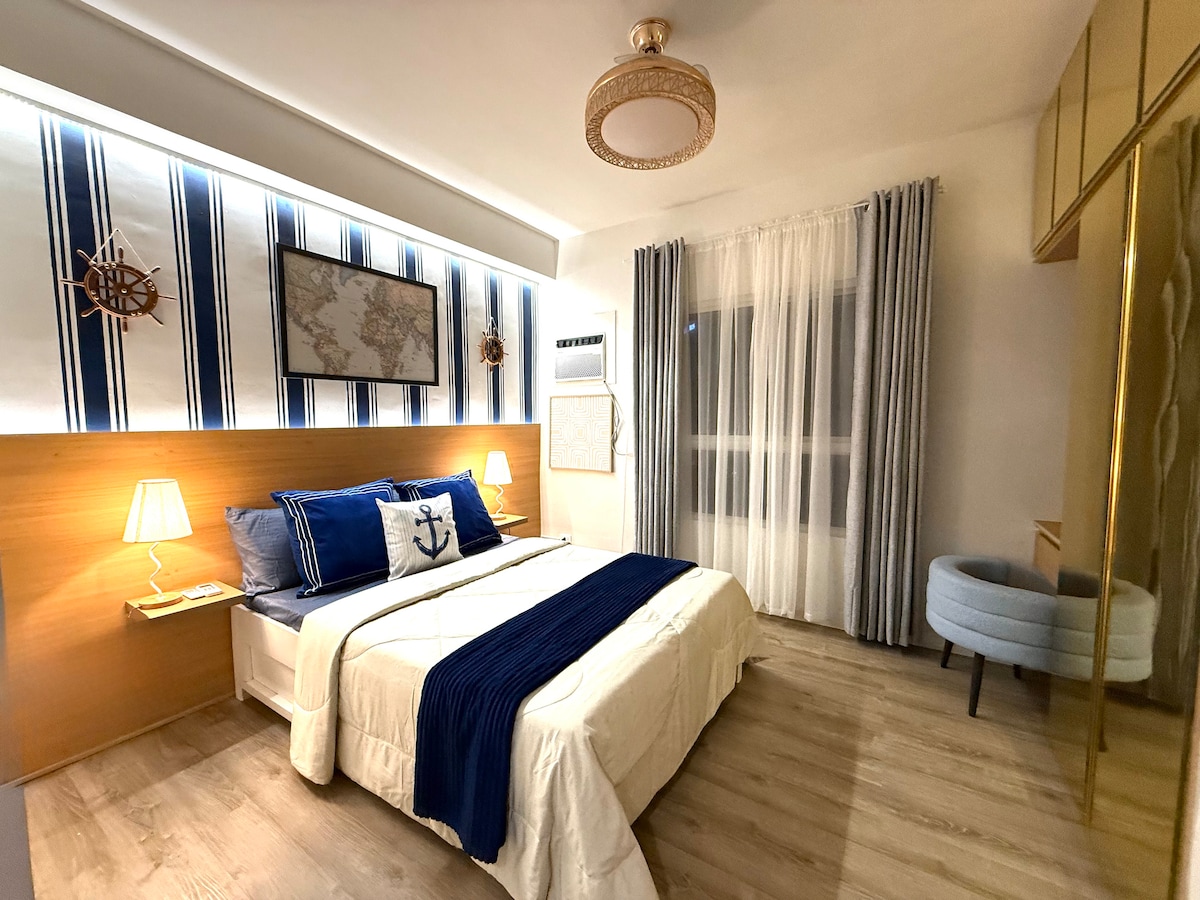 Ubicado en la planta 16, este acogedor estudio ofrece vistas panorámicas del horizonte y el mar de Bacolod. Despiértate con la luz dorada que entra por la ventana, relájate bajo una lámpara de araña de estrellas y descansa en sábanas suaves. Un escritorio de madera cálida invita a trabajar o a escribir en un diario. Perfecto para viajeros solitarios o parejas que buscan serenidad por encima de la ciudad: compacto, tranquilo e inolvidable.