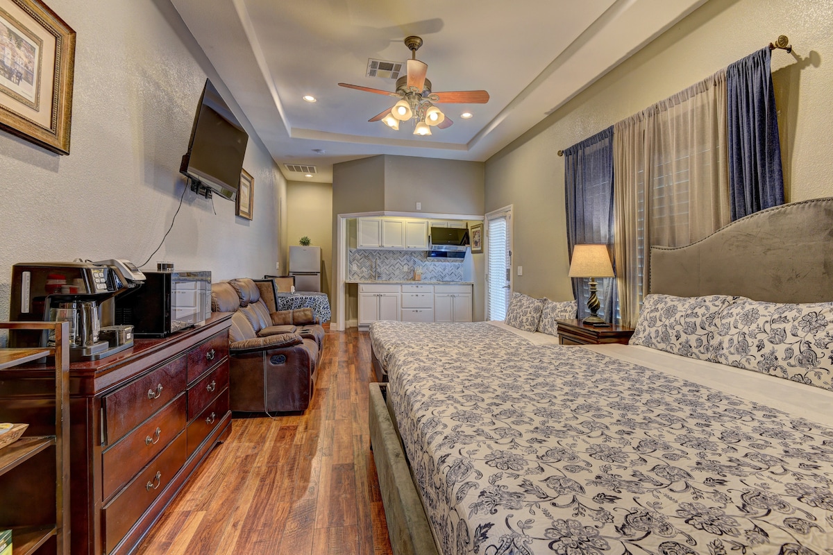 Nuevo estudio de renovación (575 pies cuadrados) de una casa personalizada en un terreno de 1,0 acre. Aparcamiento gratuito, aparcamiento para caravanas. ¡Excelente ubicación! A 3 millas del aeropuerto/Strip/UNLV. Aire acondicionado independiente. Una planta con entrada privada y patio delantero privado. 1 cama tamaño king, lavadora/secadora pequeña, cocina de granito, muebles nuevos con colchón nuevo. Unidad de aire acondicionado dividida. Limpia y cómoda.