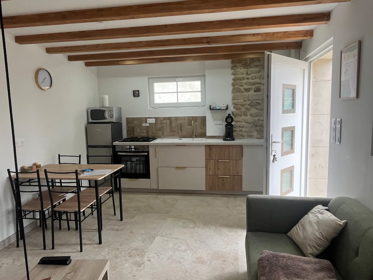 Se alquila casa de 60 m², con patio cerrado y aparcamiento exterior, frente a la casa rural. 1 sala de estar en la planta baja con cocina, sala de estar, chimenea. 1 cuarto de baño en la planta baja Arriba, 2 dormitorios en fila, un primer dormitorio principal con una cama doble de 160x200. Al fondo, una habitación para niños con dos camas individuales 120x190 y 90x190. Es una casa que combina la comodidad de las comodidades modernas y el encanto de las piedras antiguas. Calefacción estufa de leña y radiador eléctrico.