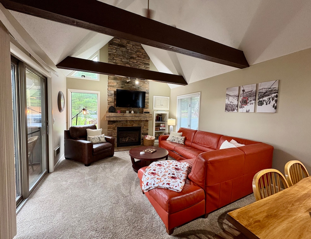 Los aspectos más destacados del condominio son: - dormitorio principal king de la planta principal con baño privado - baño completo adicional de 4 piezas en la planta principal -eléctrica chimenea -55" TV y acceso inalámbrico a Internet - En el piso superior renovado, un dormitorio loft abierto con 1 cama tamaño queen y una litera completa con dos camas individuales. - dormitorio del segundo piso con 2 camas completas con baño privado. La cocina bien surtida tiene todas las comodidades del hogar junto con una lavadora y una secadora para su conveniencia.