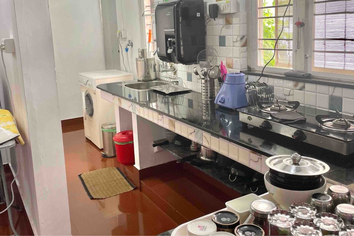 🌿 Esta elegante villa de 2 dormitorios y salón, totalmente amueblada, es una de las dos villas en un complejo cerrado de 40 centavos. 🏡 Convenientemente situado cerca de la autopista que conecta el Aeropuerto Internacional de Cochin y Ernakulam. A pocos pasos de la estación de metro, que ofrece un acceso rápido a las principales atracciones de la ciudad. 🛏️ LO más destacable: Complejo privado cerrado con amplio espacio de estacionamiento. Ideal para familias que buscan seguridad, comodidad y conveniencia. Nota: Solo aceptamos grupos familiares. Para otros huéspedes, envíanos un mensaje antes de reservar.