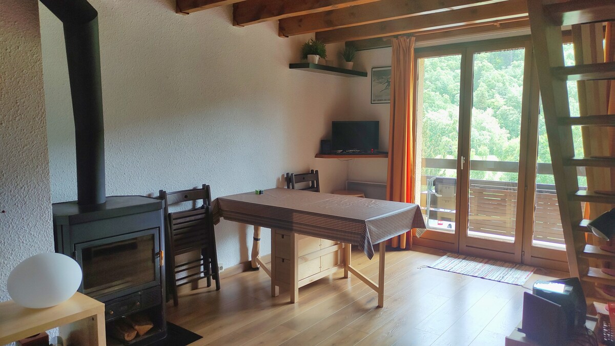 Apartamento de montaña acogedor totalmente nuevo situado en Angoustrine. Exposición orientada al sur, zona muy tranquila y muy bien expuesta. Consta de una cocina americana equipada y un salón que consta de una sala de estar + sofá cama con acceso a una terraza privada con impresionantes vistas a la cadena de los Pirineos Francesa y Española. Dos habitaciones equipadas con camas de matrimonio, una de ellas con acceso a la terraza. Baño con ducha italiana y aseo separado. Calefacción estufa de pellets