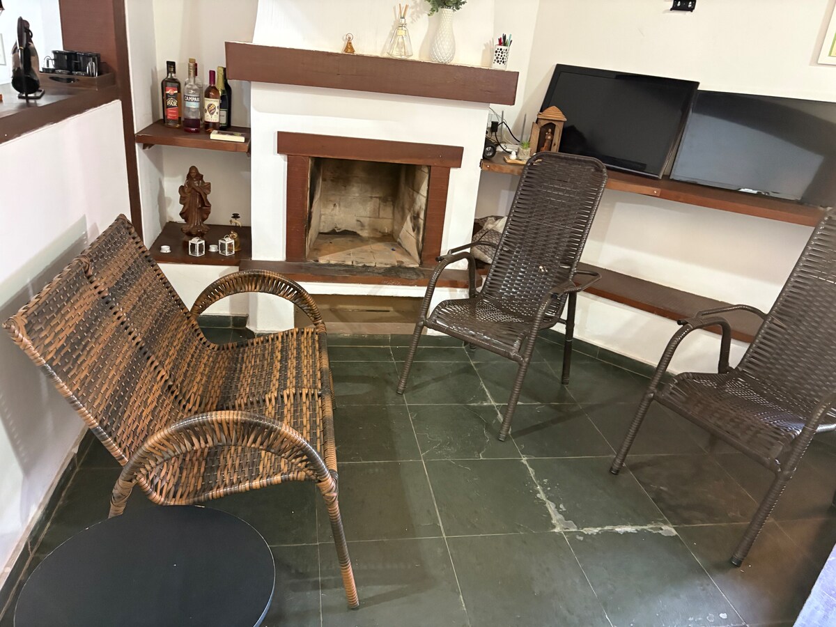 CHALÉ EXCLUSIVO Y NO COMPARTIDO. Chalé de Campo ubicado en la zona rural de CAPITÓLIO, con aire acondicionado, jacuzzi climatizado, zona de acampada, piscina, barbacoa, cama suspendida, internet, TV por cable, Netflix, chimeneas, cocina completa. Cerca de los diversos lugares de interés de la región. Ubicado entre montañas es perfecto para parejas y familias a las que les gusta la naturaleza, la tranquilidad y la paz que proporciona. La propuesta del Chalet es la belleza natural, la tranquilidad, las comodidades y la paz.