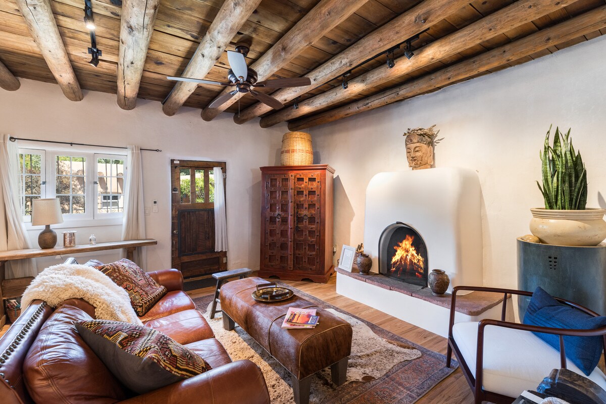 Canyon Road Chic: acogedor adobe de 1870 con chimenea