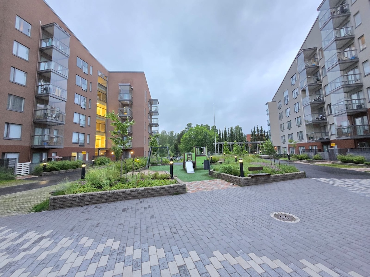 Apartamento muy funcional y totalmente amueblado situado en una bonita zona verde entre el centro y el aeropuerto. Esta es la base ideal para una estancia corta o larga en Helsinki. Ambiente agradable y calidad. Yo lo llamo básico plus. El apartamento tiene un plano práctico con el salón y el dormitorio situados en cada extremo y la cocina, el vestíbulo y el baño en el medio. Ubicado cerca del tren (a 10 minutos), paradas de autobús (a 2 minutos) y tiendas de comida las 24 horas. ¡Aparcamiento gratuito!