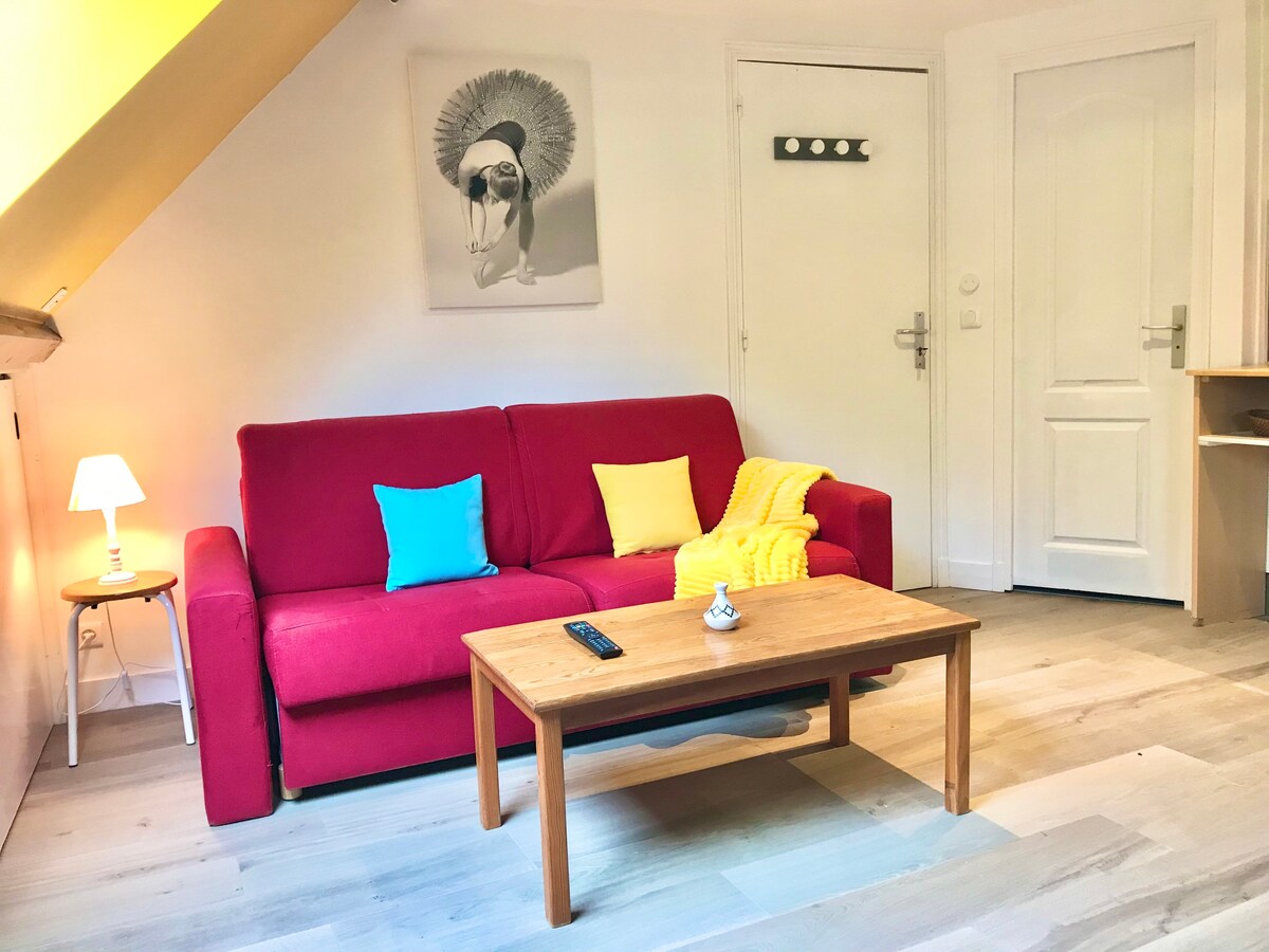 Loft casa de pueblo/adosado propietario/fiestas prohibidas Lugar y entorno muy tranquilo Ideal para 4 personas. Entorno urbano: Estación de tren de Juvisy/Orge a 5 minutos a pie: línea C (12 minutos París BNF)/línea D (25 minutos París Gare de Lyon) Aeropuerto de Orly (a 10 min en coche) Aparcamiento: Privado en el patio (2 coches pequeños) Interior: Espacio abierto a la sala de estar, comedor, cocina, estufa de leña y 2 dormitorios, baño/aseo... Accesorios: Hay ropa de cama y toallas