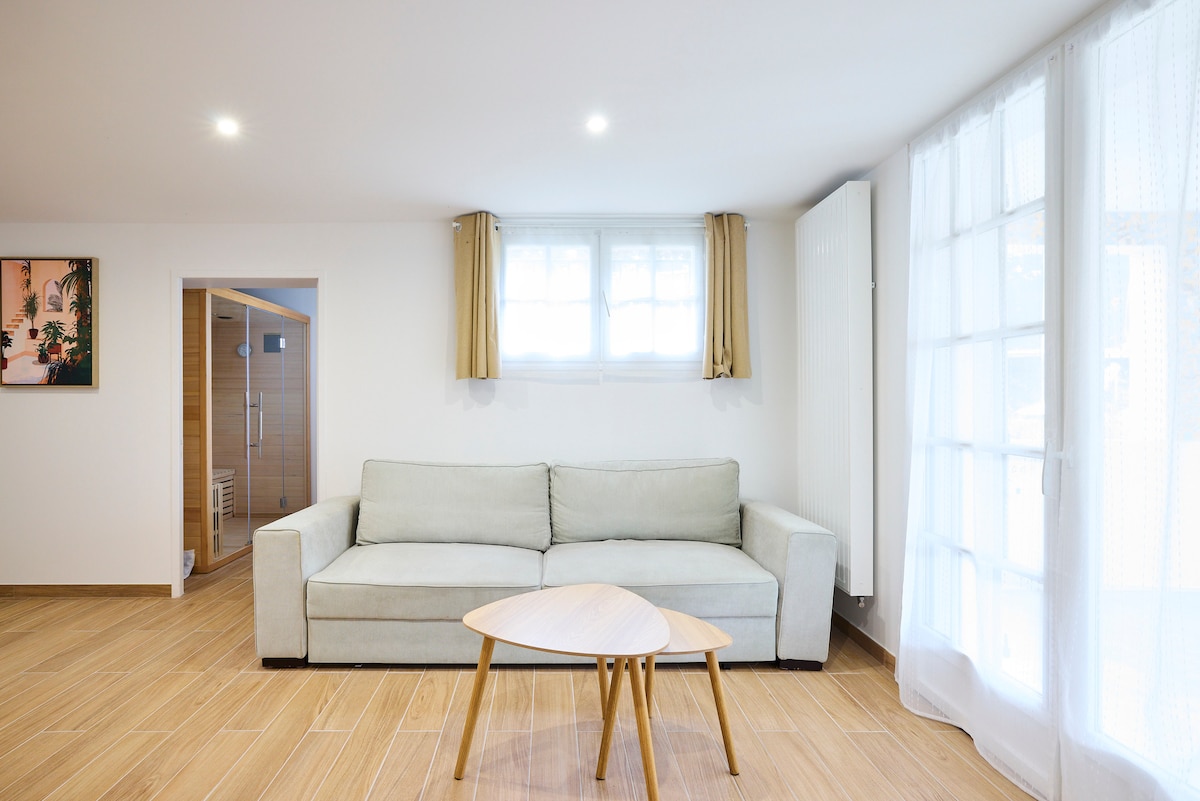 Welcome to our renovated apartment, located in a quiet suburban area near Paris. You will find : -2 bedrooms -Private Sauna (in option for 60€/d) -Private Jacuzzi/spa (in option for 100€/d) -A green outdoor space with garden furniture and barbecue -Leisure equipment -A fully equipped kitchen including dishwasher, coffee machine, and all the necessary utensils. -A washing machine -Baby equipment on request -WiFi internet connexion, Netflix