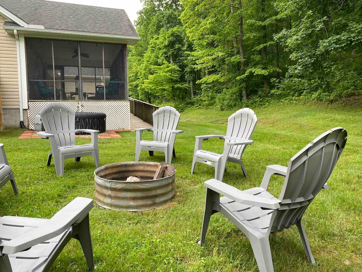 Trae a toda la familia a esta casa de 3 dormitorios ubicada a solo 10 minutos de Slade/Red River Gorge, a 22 millas de Hollerwood Off-road Park, a 40 minutos en coche de Lexington y a poco más de una hora en coche de The Ark Encounter. Este alojamiento cuenta con: - brasero exterior - Cubierta con parrilla de gas - patio cerrado - Cornhole - patio completo de 1 acre, perfecto para niños -Cocina totalmente equipada - Enchufe de 200 V en el garaje para cargar vehículos eléctricos - Internet de alta velocidad. - Lavadora y secadora. - Ducha a ras de suelo. - Rampa para entrar en la casa.
