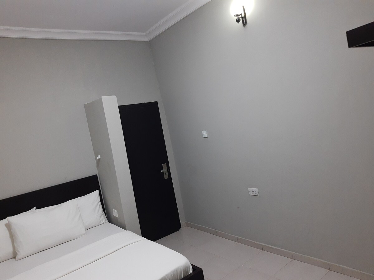 Somos un bed and breakfast familiar en una zona tranquila y de primer nivel de Lekki Fase 1. Hay 15 habitaciones en el sitio, pero esta habitación que se muestra aquí es para 202 en el primer piso, subiendo 1 tramo de escaleras. Tiene acceso a un balcón. Ofrecemos electricidad las 24 horas, limpieza diaria, wifi gratuito y 1 desayuno de cortesía por habitación (huevos, tostadas, café/té). Desayuno y otras comidas mejoradas disponibles. A 5 minutos de: - Puente Ikoyi Link - Playa emblemática a 15 minutos de: - Isla Victoria - Ikoyi