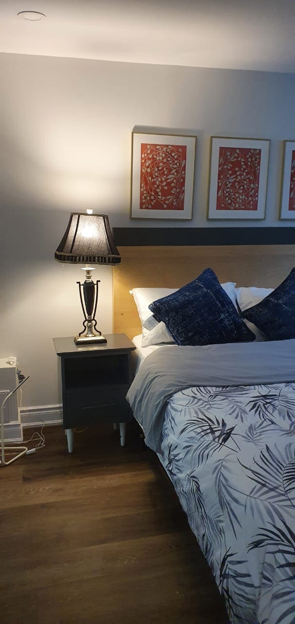Disfruta de este alojamiento totalmente privado, recién renovado, extremadamente espacioso, con 3 dormitorios, 1 baño y 2 plazas de aparcamiento gratuitas en el corazón de una exclusiva suite en el sótano de Etobicoke Toronto. - A 10 minutos en coche del aeropuerto (YYZ). - A pocos minutos de las principales autopistas. - A 15-20 minutos en coche del centro de la ciudad. - A 1 minuto a pie de la parada de autobús. - A poca distancia a pie de una tienda de comestibles, LCBO, tiendas de conveniencia y mucho más. ¡Verdaderamente una ubicación perfecta para todo!