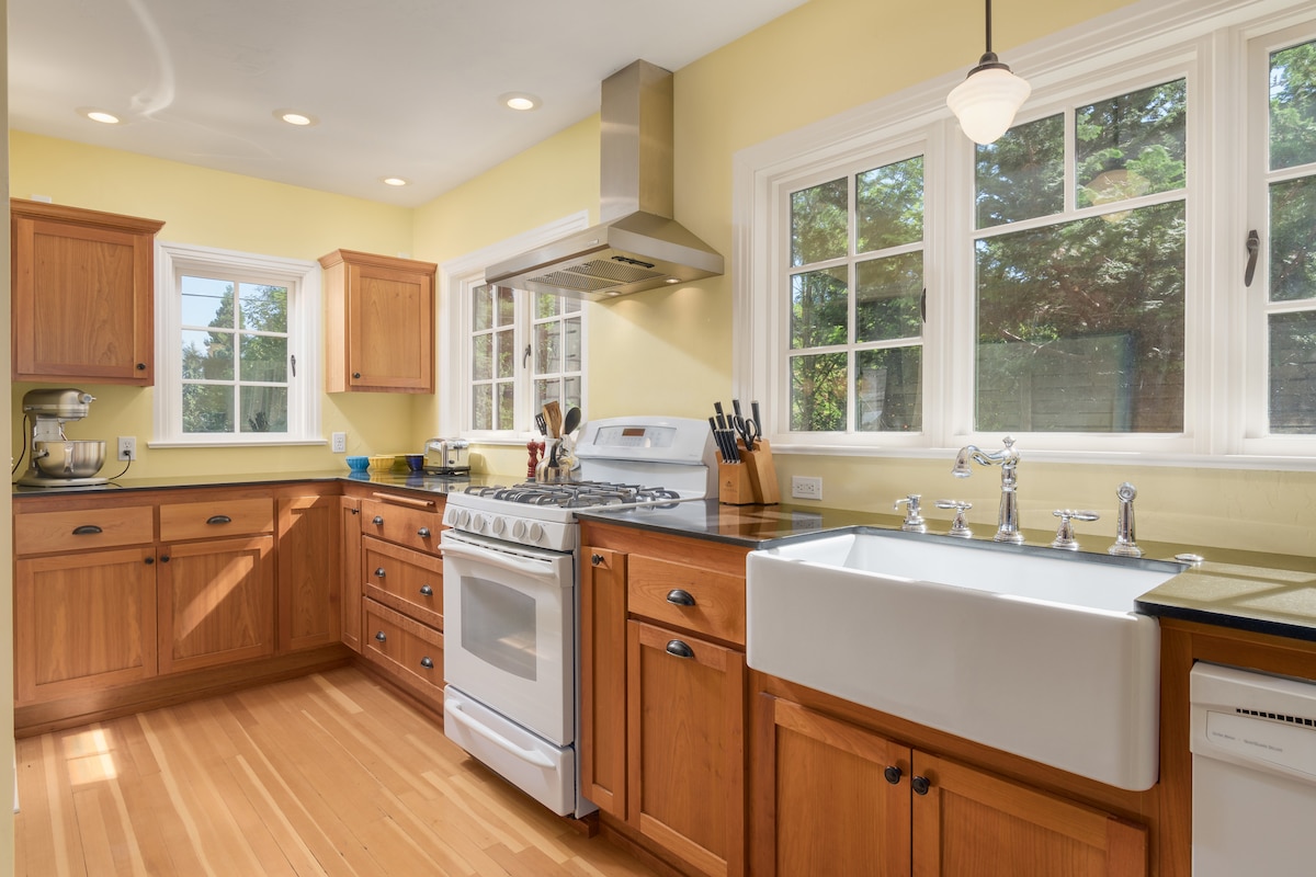 Casa de campo con patio trasero de diseño arquitectónico ubicada a una milla al sur de la Universidad de Oregón, junto al histórico cementerio masónico de Eugene. Este espacio contemporáneo del noroeste incluye una amplia sala de estar con una nueva cama tamaño king, TV inteligente, wifi, cocina, baño, sauna privada y jacuzzi, y una amplia terraza para disfrutar de hermosas puestas de sol. Situada a poca distancia a pie de la universidad, cafeterías, Amazon Pool y tiendas del barrio. Disfruta de un aparcamiento dedicado y un entorno precioso.