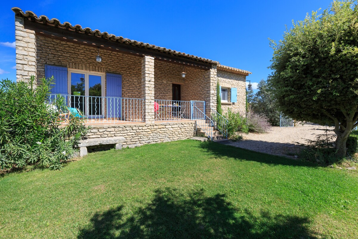In Gordes, in the heart of the Luberon Regional Park, authentic air-conditioned stone house with private garden and pool, surrounded by cherry and olive trees Large enclosed flowered garden, private secure pool lined with roses, south-facing terrace with dining area and barbecue Renovated interior: bright living room with fireplace, fully equipped family kitchen renovated in 2025, three bedrooms including a master suite High-speed Wi‑Fi. Perfect for families and friends. Ideal for young children