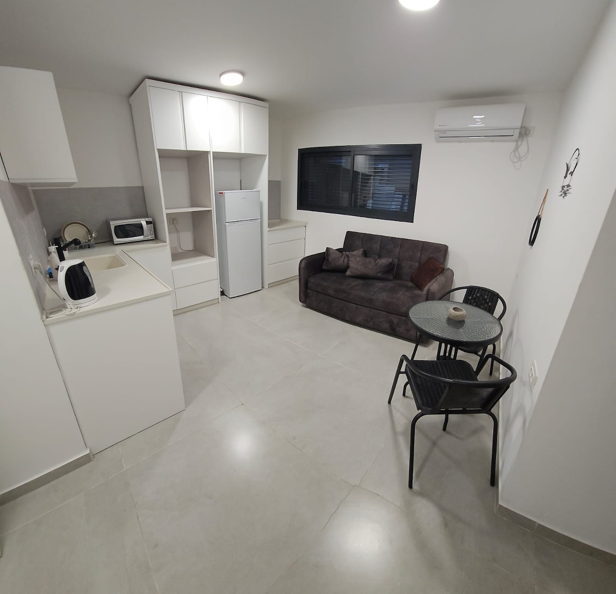 יחידת אירוח קטנה, שקטה ונעימה בלוד, קרובה מאד לנמל התעופה – מושלמת ללילה לפני טיסה או אחרי נחיתה. גישה ישרה ונוחה מהמדרכה, ללא מדרגות, עם כניסה נפרדת ופרטיות מלאה. היחידה כוללת חצר ירוקה, דשא סינתטי וגינון, מטבחון מאובזר, מכונת קפה, Wi-Fi, מזגנים וחניה חופשית בחוץ. מתאימה ליחיד או לזוג המחפשים נוחות, שקט ונגישות. מחיר לזוג כולל ניקיון ובלי הפתעות נוספות...