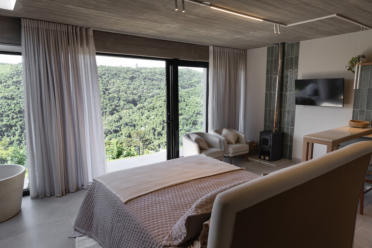 Una cabaña de estilo alpino inmersa en el bosque nativo y en los viñedos de una familia de origen italiano. Diseñada para despertarse con el sonido de los pájaros y dormir con el sonido del agua. Lo más destacado está justo a la llegada, la terraza está encima de una cascada. La cocina está completa con utensilios de alta calidad. El baño tiene vistas al bosque, bañera de inmersión y amenities L'Occitane. Todas las habitaciones están decoradas hasta el más mínimo detalle. Ideal para relajarse y ponerse en el ritmo correcto de la vida.