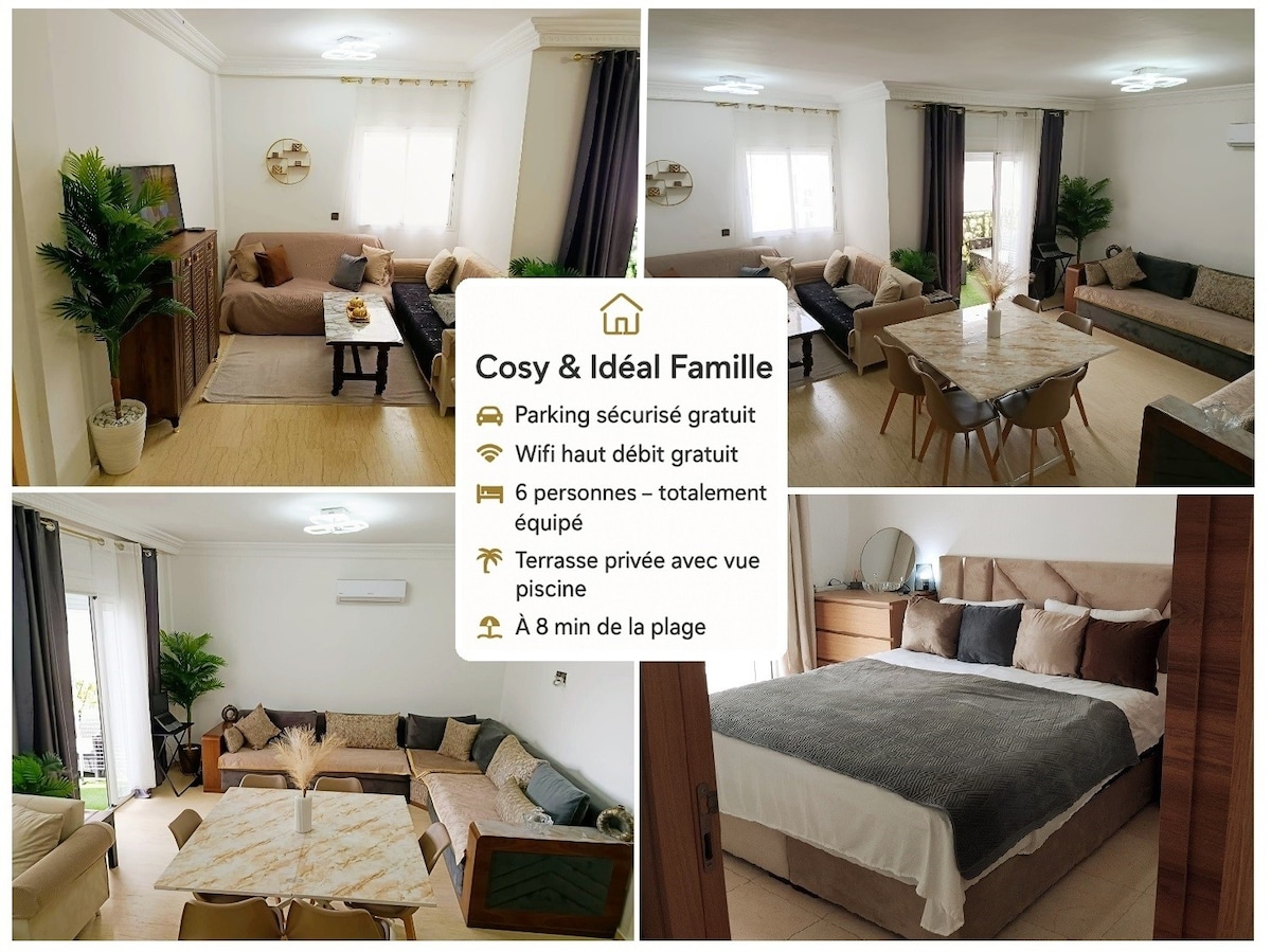 Disfruta del encanto de Tanger desde este elegante y soleado departamento perfecto para familias, amigos o trabajadores remotos Ubicación 📍 tranquila y céntrica en Malabata, cerca de la playa, cafeterías y estación de tren ⚡ Wifi de fibra rápida, televisión inteligente con Netflix e IPTV 🛏️ 2 dormitorios | 🚿 1,5 baños 🧺 Lavarropas ☕ Cocina totalmente equipada 🌇 Balcón Asistencia para huéspedes 🛎️ las 24 horas, los 7 días de la semana: nuestro equipo local siempre está disponible para garantizar una estancia fluida y agradable. Reserva y disfruta de la comodidad marroquí con un toque moderno.